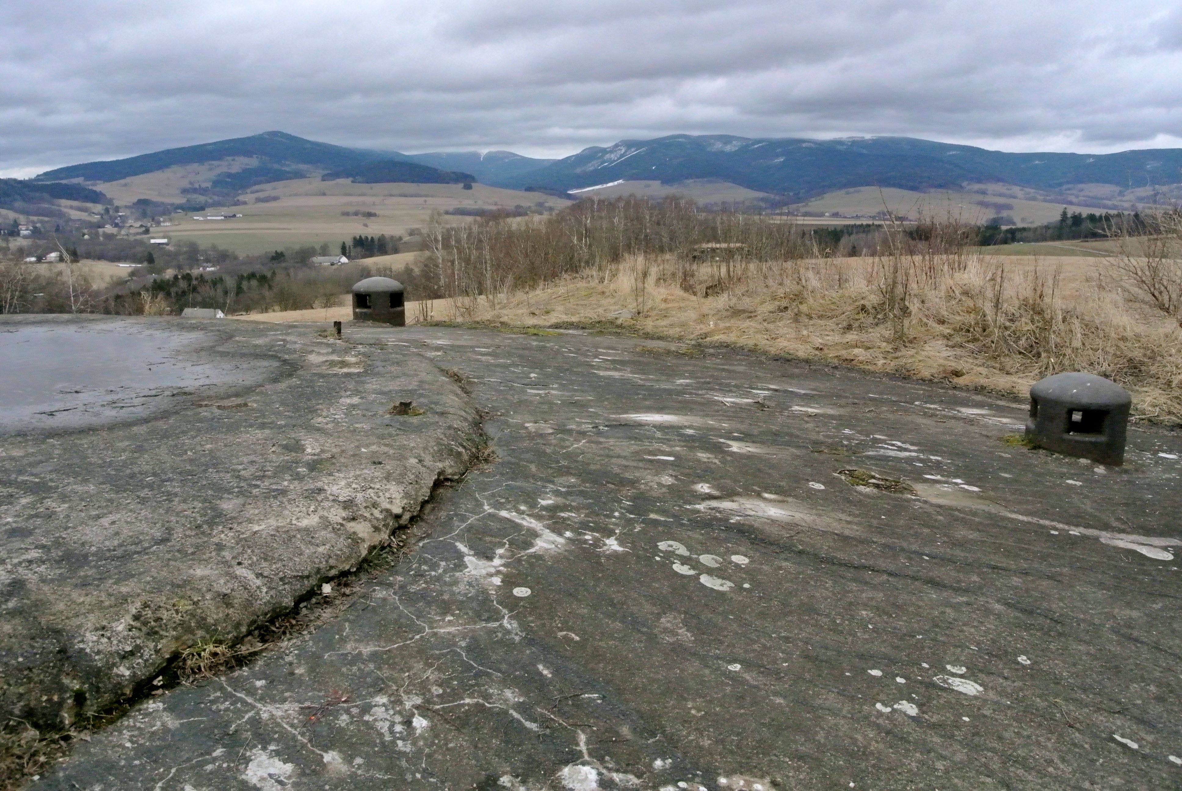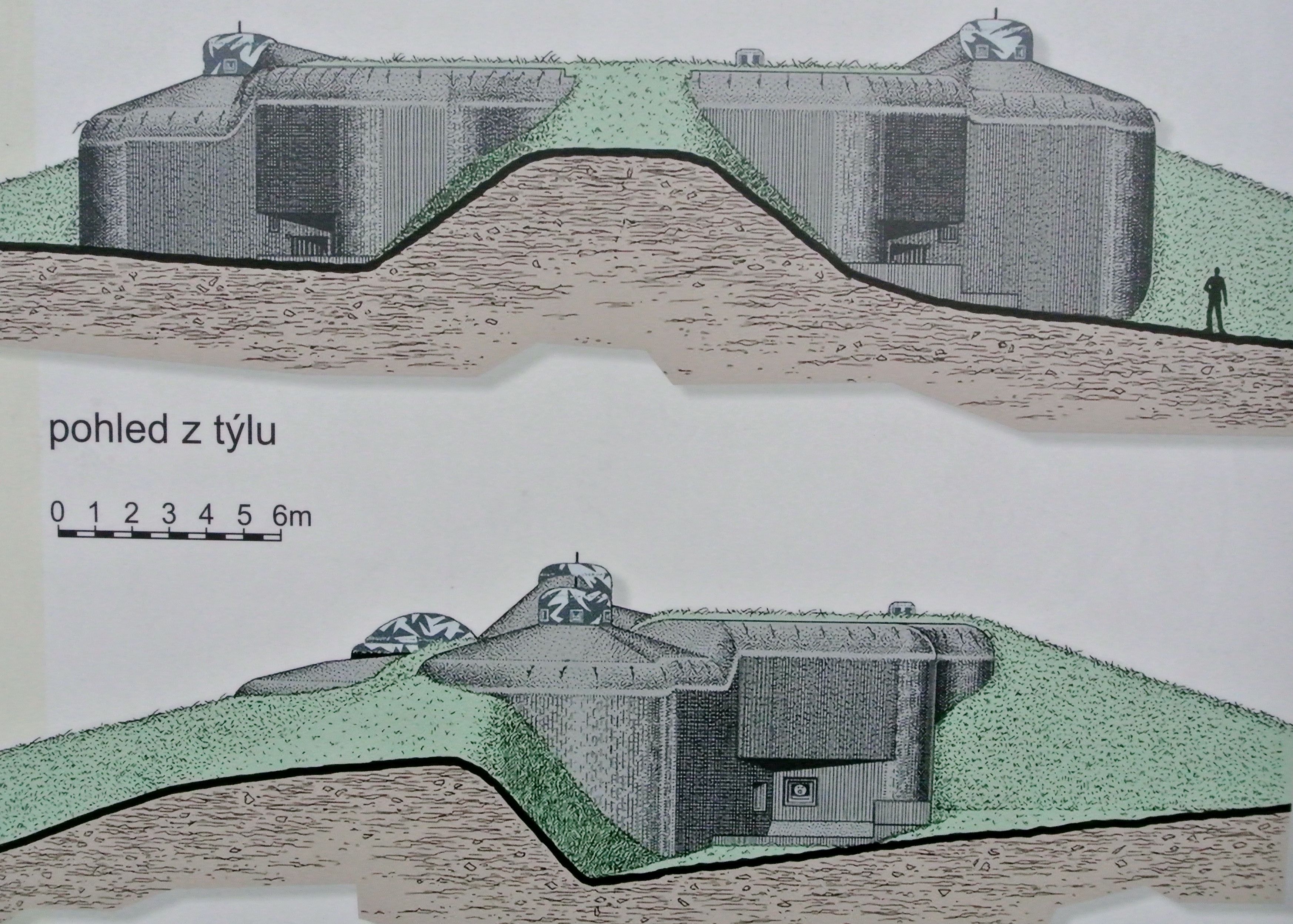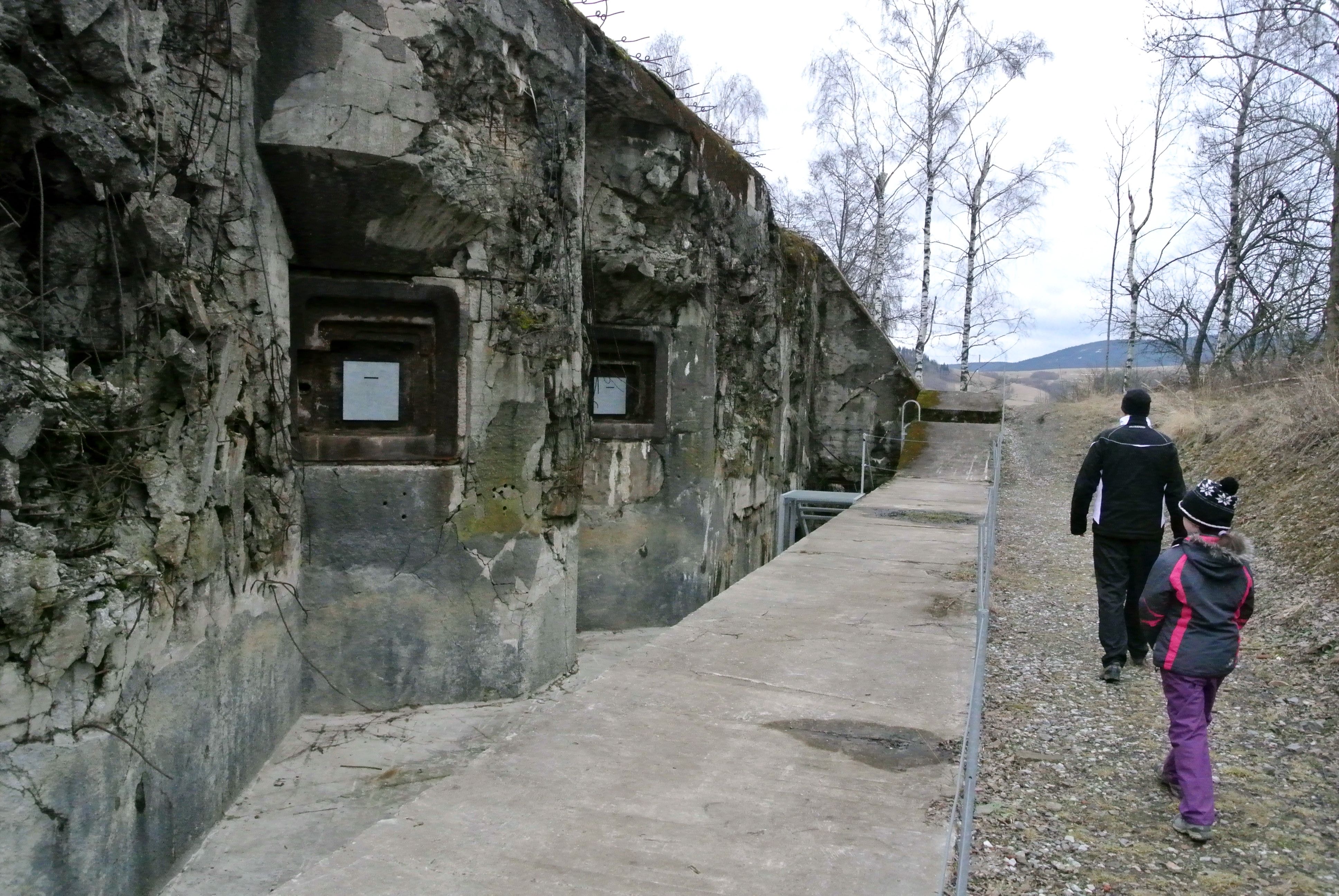 Přiznám se, že mě tahle část historie zajímá, a že mě nepřestává udivovat, jak dokonale navržený ten systém obrany byl. Procházka cca 750 metrů tam (ze vstupního objektu, který je na obrázku níže vlevo, pod plánovanou dělostřelecký srub (na obrázku v lesíku – první odbočka doprava) a zase zpět, dá zabrat. Rozhodně nedoporučuji klaustrobobikům :-)