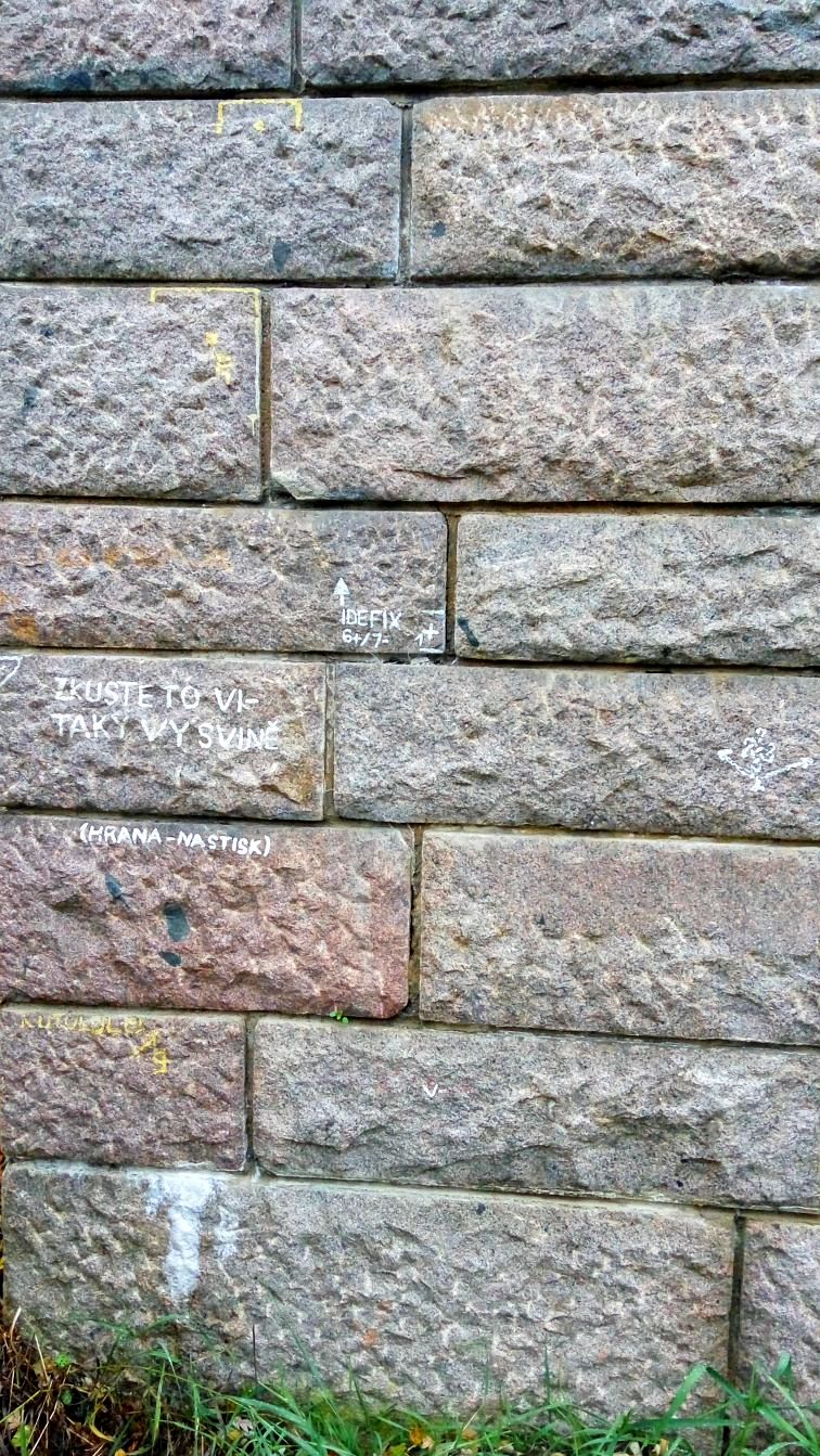 Autem jsme dojeli do Ostopovic a vyrazili, nejdříve k Dolnímu mostu přes polní cestu, kde měla být geocache GC50R4F Ostopovice - dalnicni most pres polni cestu. Most jsme našli hned, ale keška nám dala trochu zabrat. Signál trochu poskakoval, ale nakonec na to Madlenka přišla a já pro ni vlezl. Nebudu to popisovat, abych nepokazil hledání (POZOR, na fotkách je spoiler :-). Poctivě jsme se zapsali, dali do kešky náš CWG a TB 1960 Tanners (Bob) a kešku vrátili na své místo.