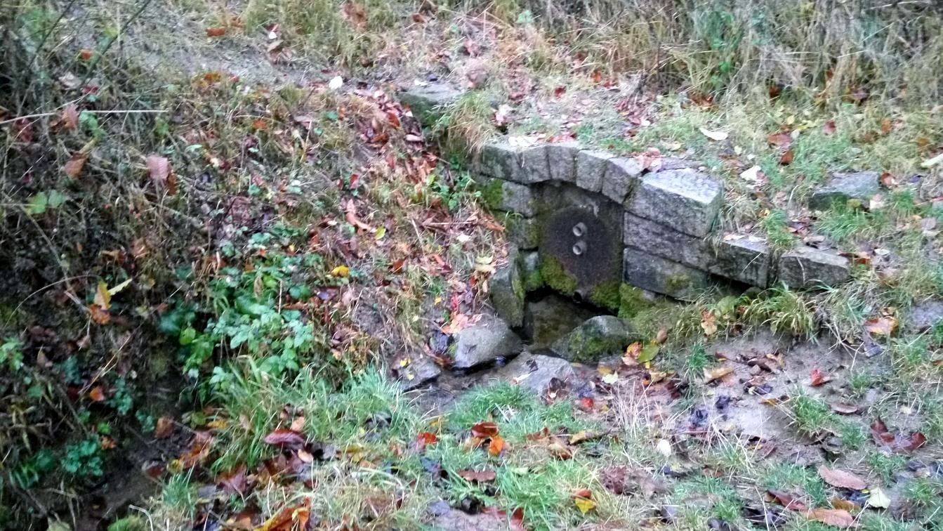 Času bylo pořád ještě hodně a na déšť jsme si už zvykli, tak jsme si to ještě protáhli k Šelši. Šelše bylo za první republiky výletní místo se studánkou, dvěma rybníky (jeden fungoval jako přírodní koupaliště), sokolským hřištěm a přírodním divadlem. Kvůli výstavbě Hitlerovy dálnice bylo ale údolí částečně zavaleno. Studánka je tam pořád a rybníček byl v roce 2009 obnoven. Na hledání kešky už nebyla nálada, tak jsme si ji nechali na příště a vrátili se promoklí k autu, u kterého jsem byl moc rád, že má přídavné topení na dálkové ovládání, takže nás vítalo teplem :-)