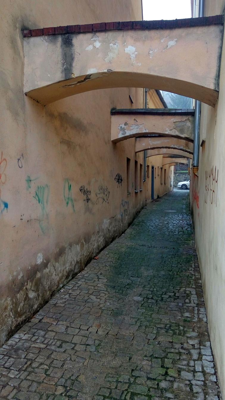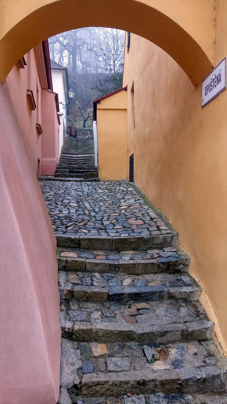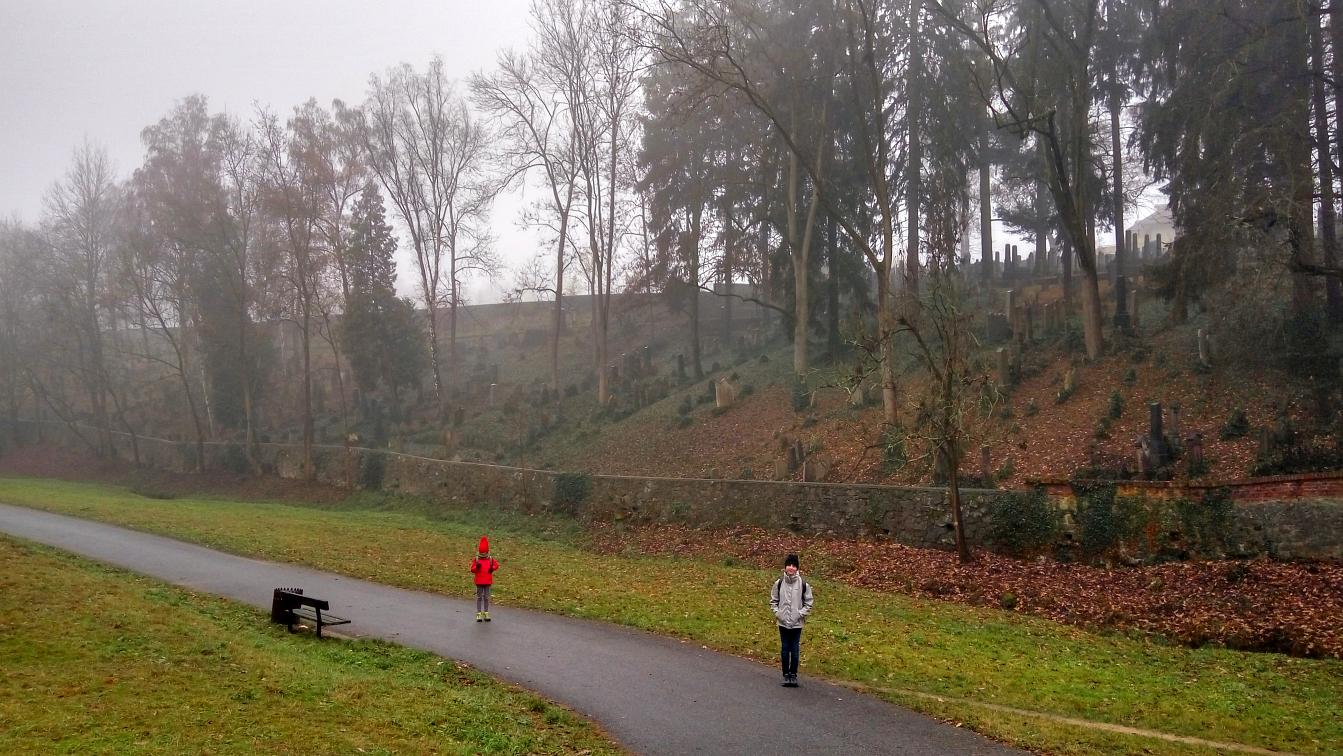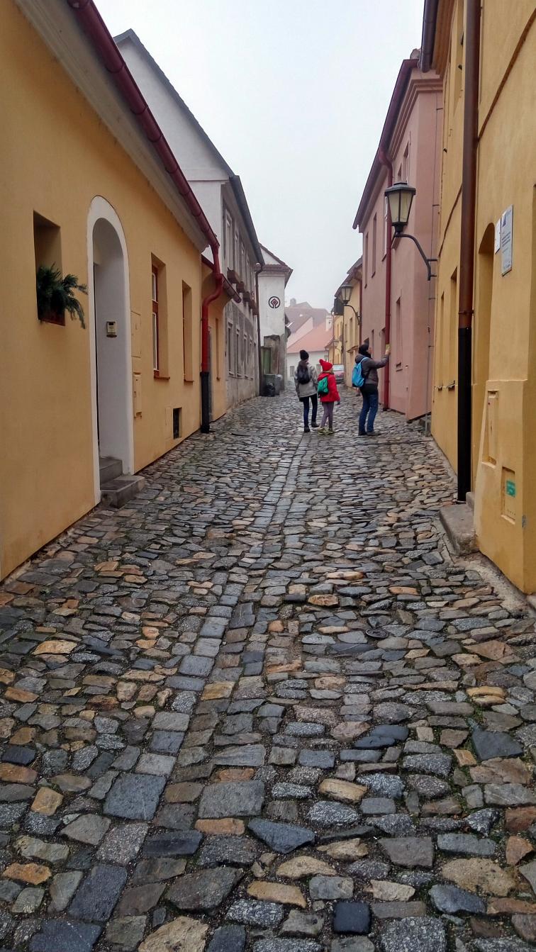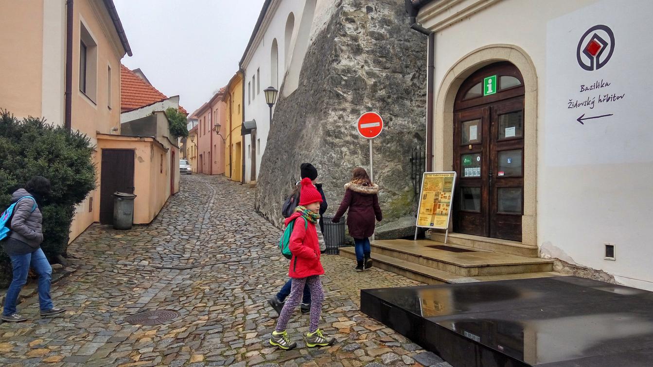 Navigací jsme se nechali přivést na parkoviště nad zámkem, které je na ulici Nad Zámkem a jmenuje se Nad Zámkem. Nekecali! Zámek s Bazilikou sv. Prokopa je skutečně pár desítek metrů pod parkovištěm. Bez konkrétního očekávání jsme vyrazili do studené mlhy – s cílem vidět baziliku a navštívit Židovskou čtvrť (ghetto). Obě pamětihodnosti jsou na seznamech UNESCO. Výhledy nebyly nic moc, ale to, co jsme navštívili, stálo za to. Nemá smysl se moc rozepisovat o věcech, které jsou erudovaně popsány jinde, takže jen krátký seznam s odkazy: