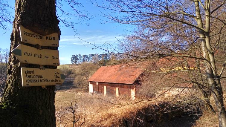 Dolní mlýn, rozcestí Pod Horkou