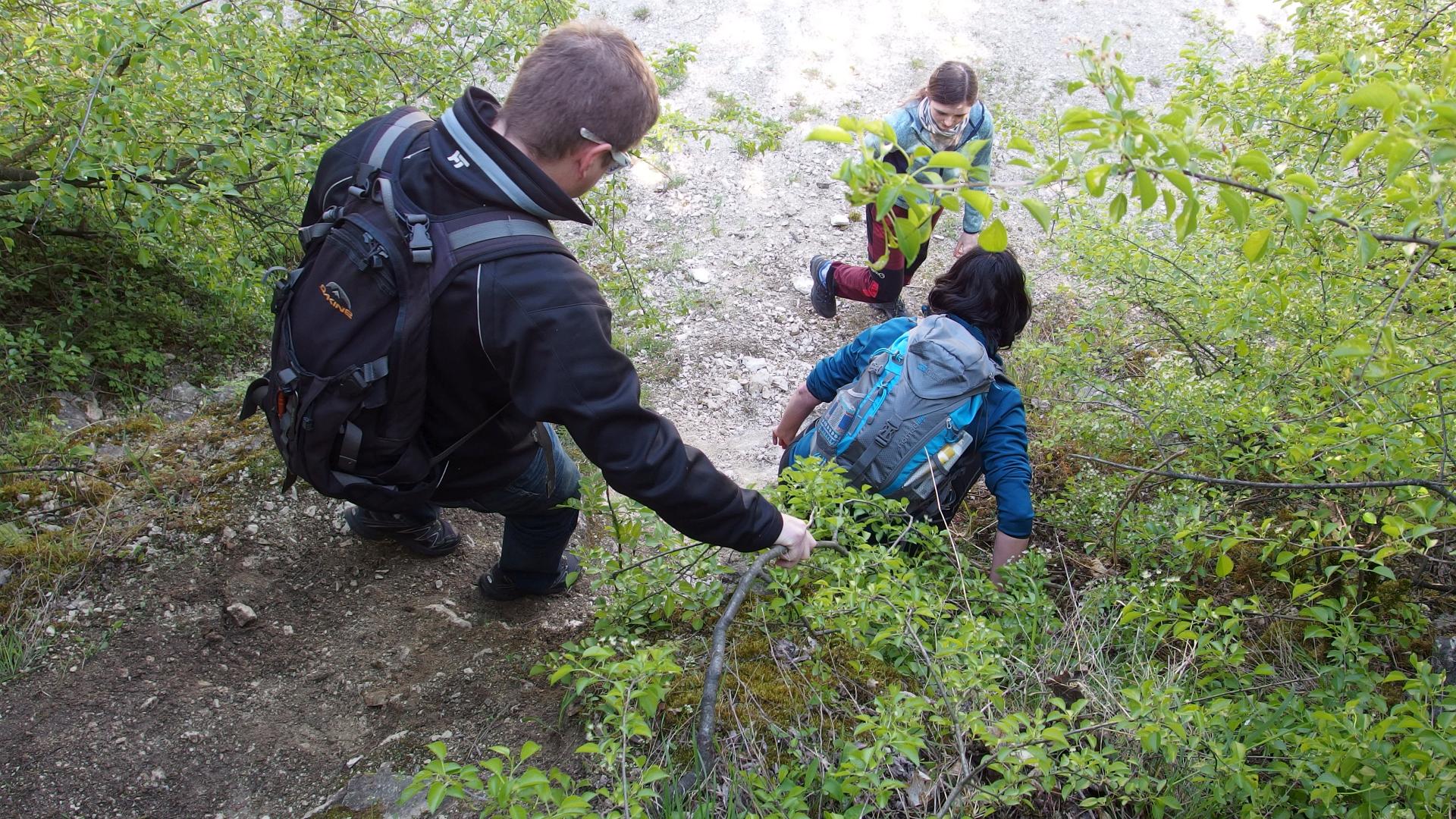 Notoricky známý výlet na Svatý kopeček u Mikulova jsme pojali tak trochu jinak – teda alespoň pro nás. Zajeli jsme za kopeček k Mariánskému mlýnu u zatopeného Janičova lomu a vydali se odtud. Nejprve jsme tedy prozkoumali lom, což mělo samo o sobě dobroudružný začátek – cesta, která měla podle mapy vést k lomu, byla podezřele připomínající cestu soukromou k budově mlýna. Snažili jsme se tedy k lomu dostat ze strany, což sice šlo, ale bylo to trochu krkolomnější.
