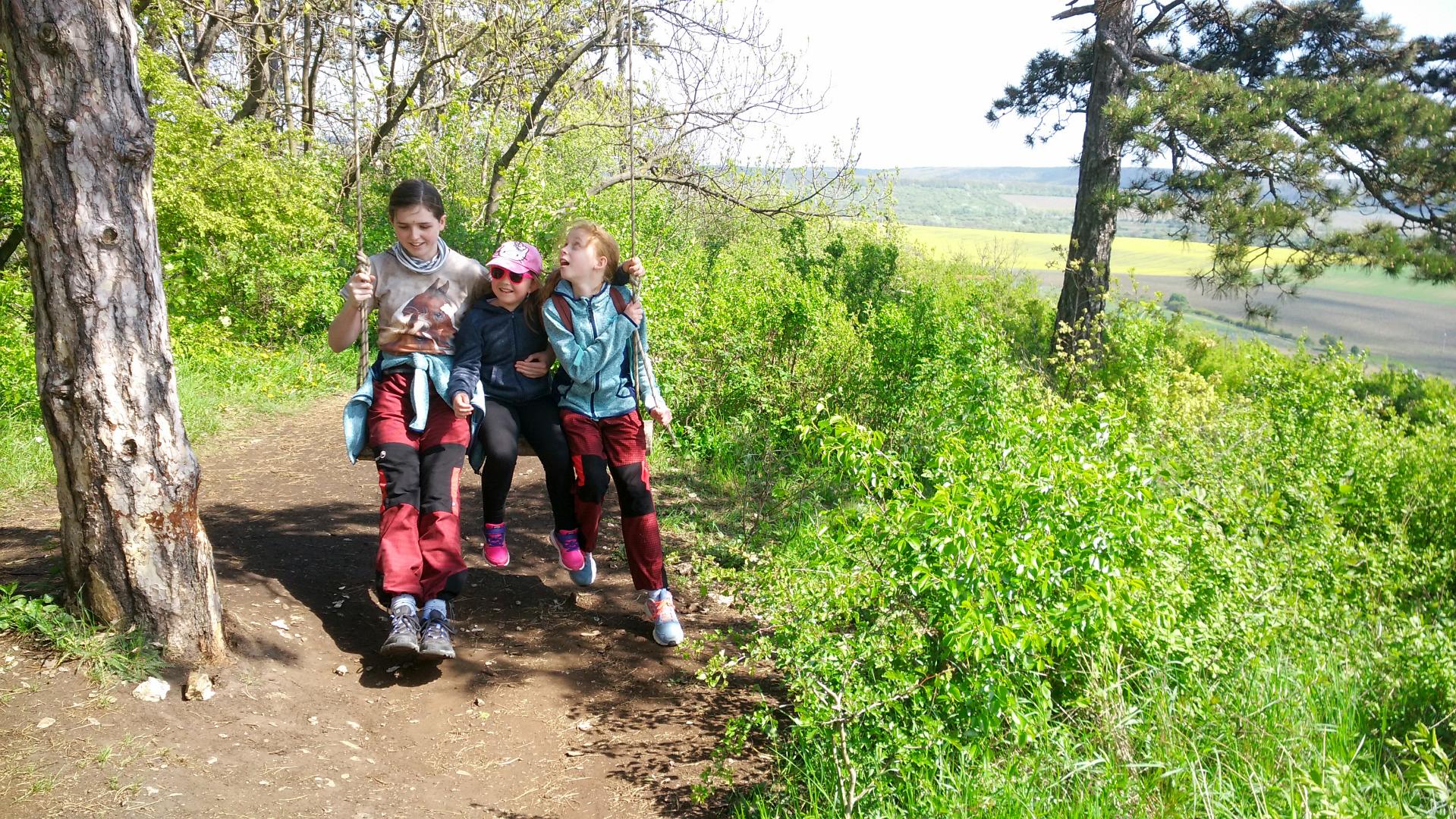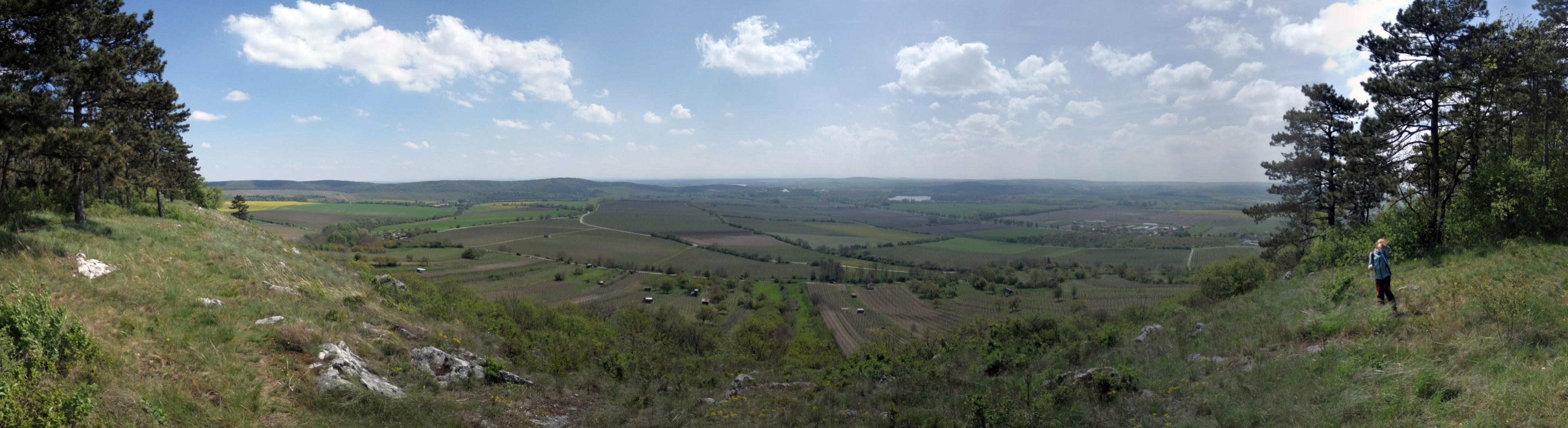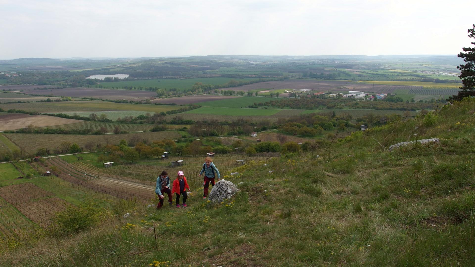 Od lomu jsme stoupali odzadu na Svatý kopeček. Odměnou nám byly krásné výhledy na kraje, na Turold, Pálavu a pak zpět na lom. V dáli byly vidět i Valtice.