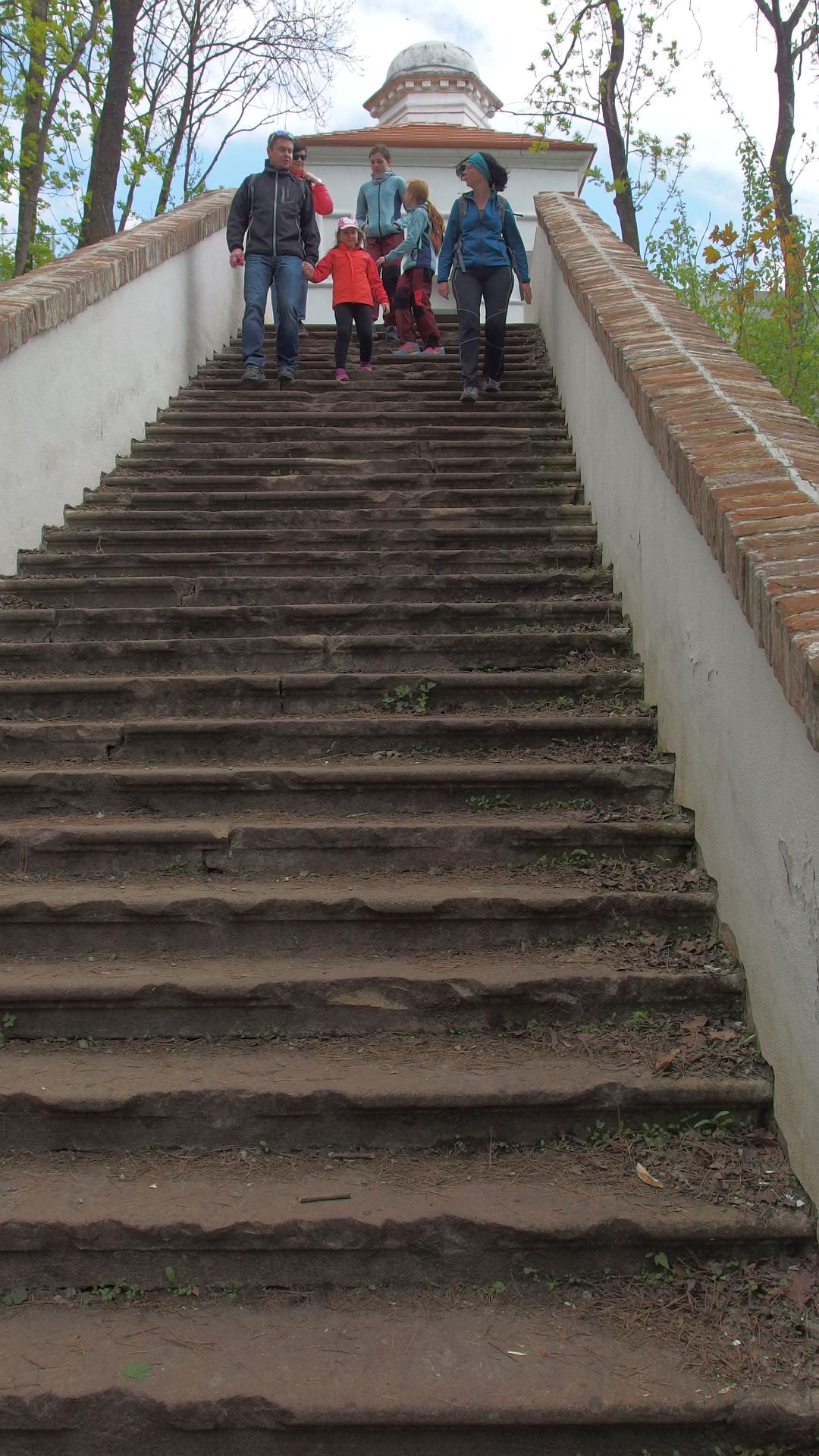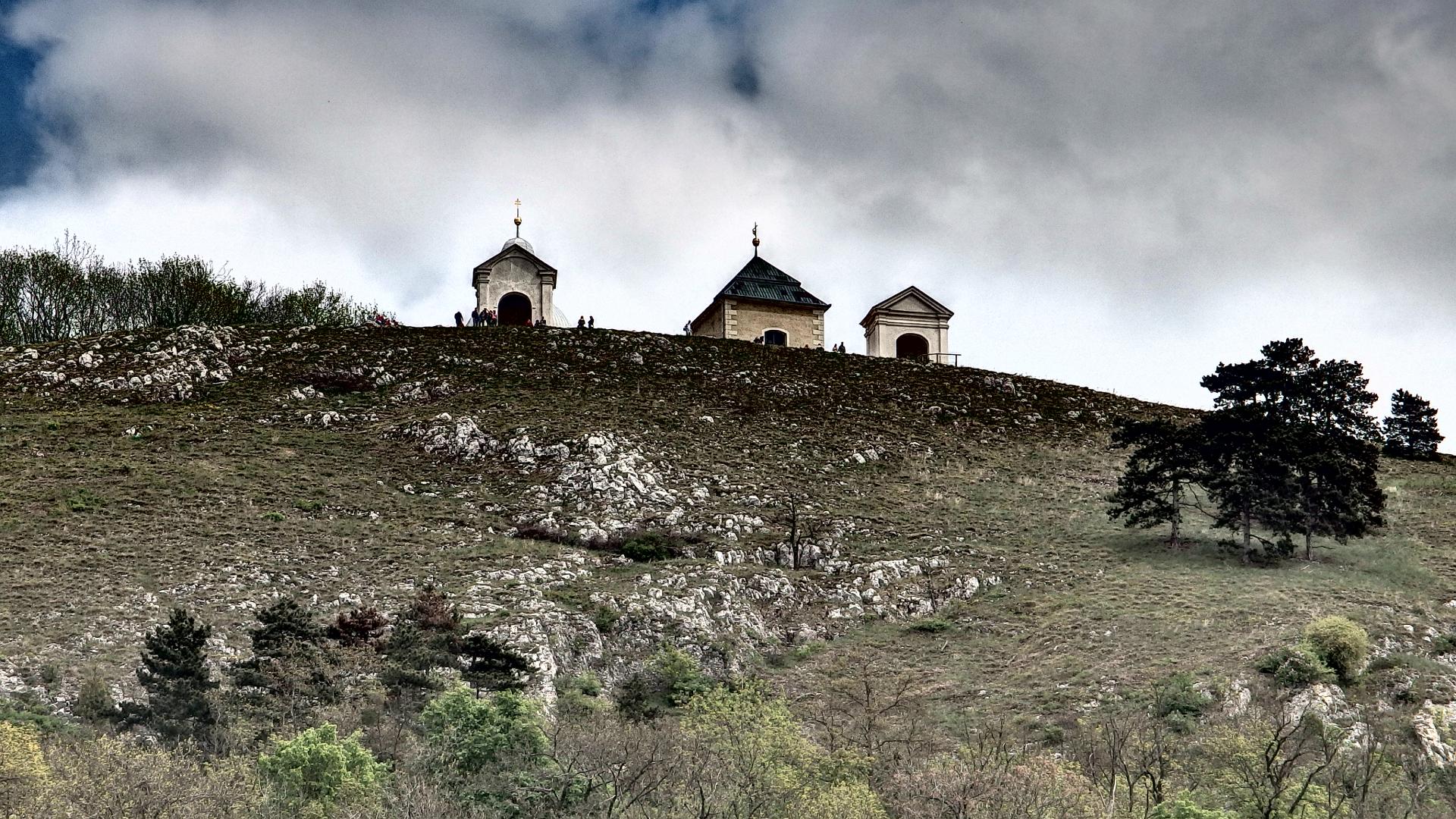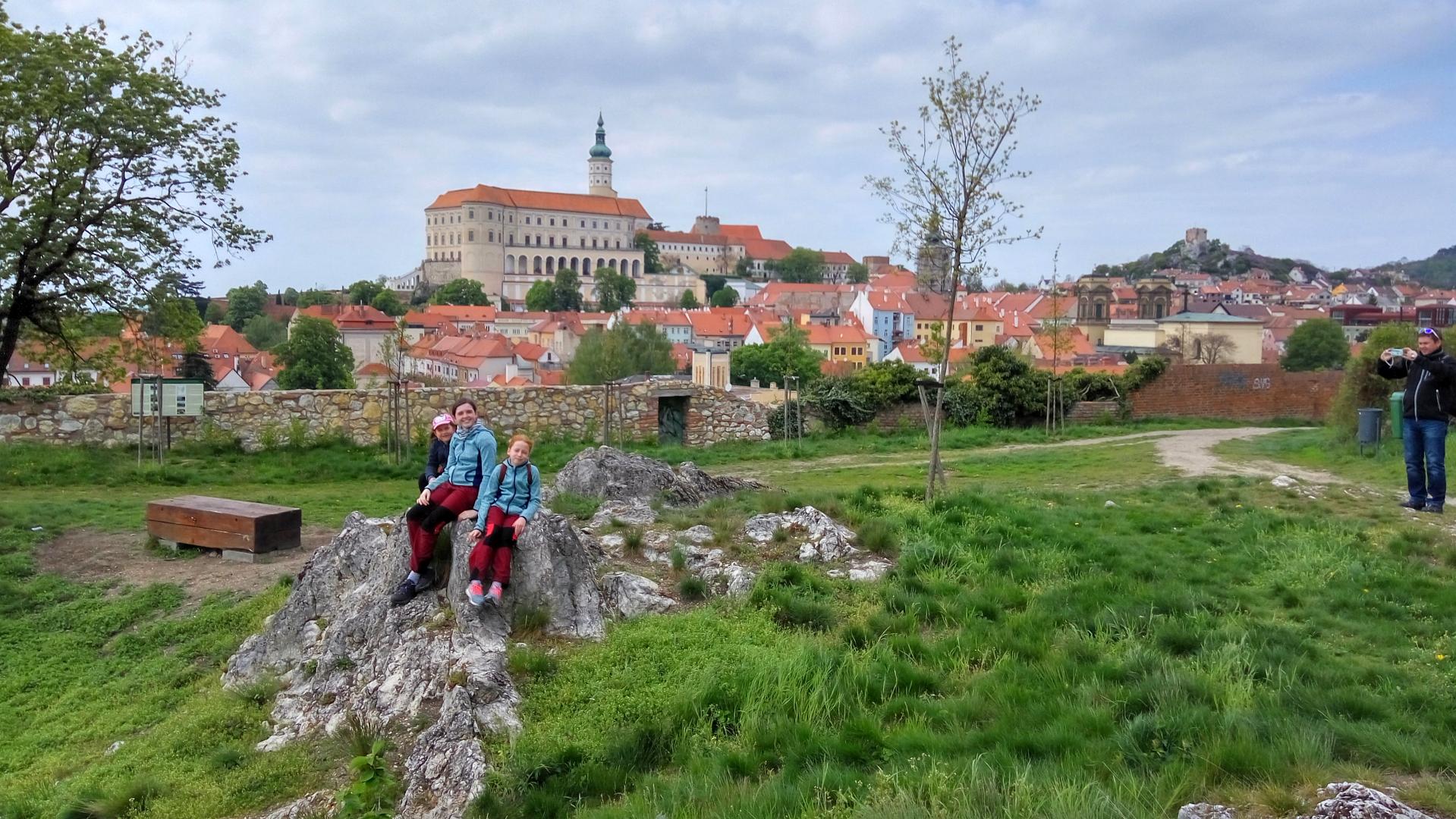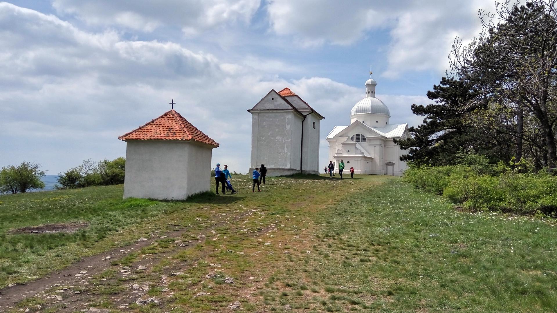 Na vrcholu u kaple sv. Šebestiána se nám otevřel výhled na Mikulov s dominantním zámkem. Dolů do mesta jsme sestoupili po Křížové cestě. Je poněkud kamenitá, takže jde buď se kochtat výhledy nebo jít, ale ne obojí zároveň.