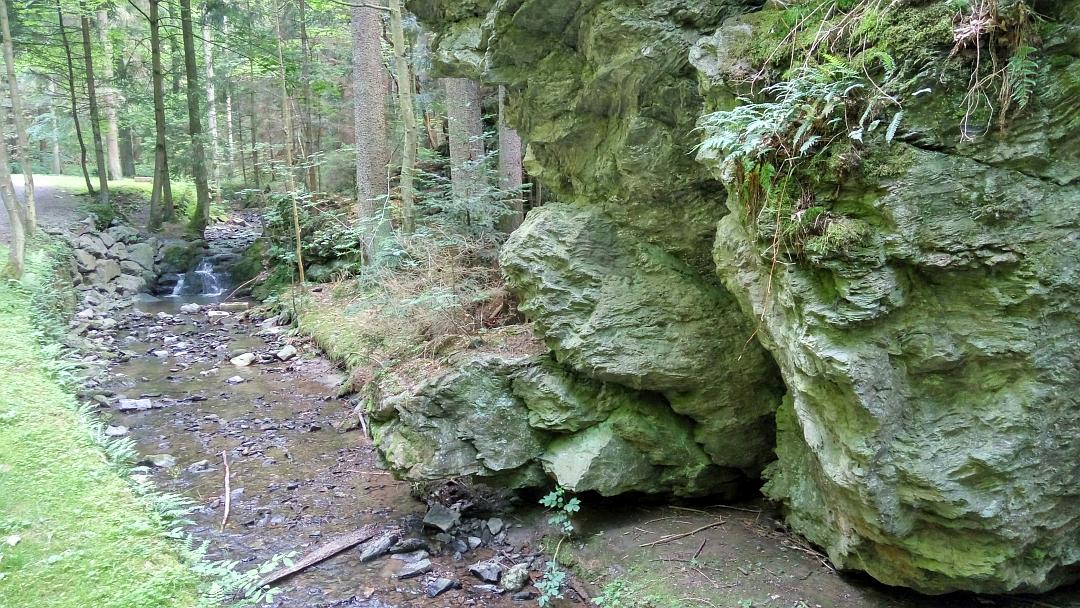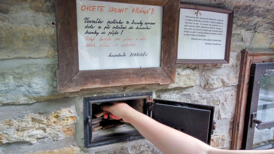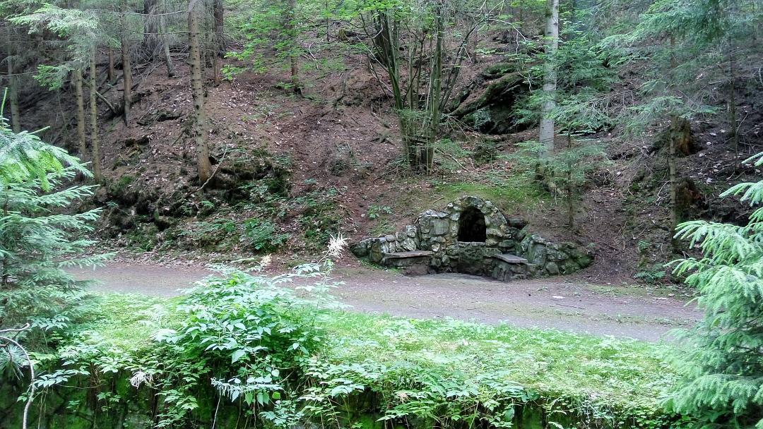 Zaparkovali jsme u Sepského mostu, který je pojmenovaný podle toho, že vede směrem na obec Spy. Dá se tam pěkně parkovat přímo na začátku ulice Klopotovské, u turistického rozcestníku Sepský most, kde začíná Klopotovské údolí. Vydali jsme se do něj po žluté turistické značce. Hned na začátku údolí je Zookoutek v Klopotovském údolí, ve kterém jsou k vidění divočáci a jeleni. Cesta pokračuje kolem Bohdašínského potoka příjemným údolím kolem jeskyňky Čertova díra k rozcestí Klopotovské údolí. Odtud jsme se vydali doleva a začali stoupat do prudkého svahu. Přes potok jsme ještě zahlédli Lesníkovu studánku a kdybychom šli údolím dál, dorazili bychom k bývalé štole zvané Mertova díra, kde sedlák Merta těžil stříbrnou rudu. Štolu jsme neviděli, jen jsme pod cestou zahlédli turistický přístřešek, který u Mertovy díry je.