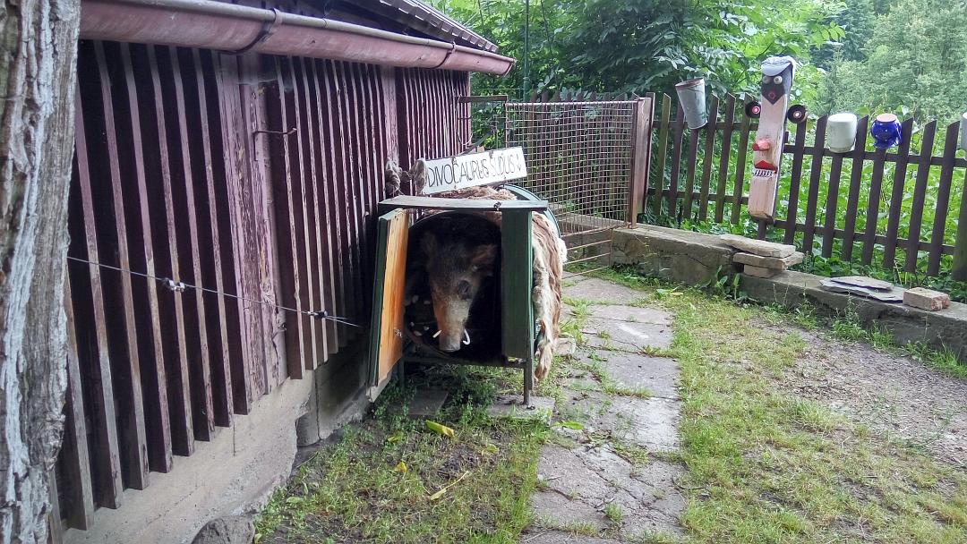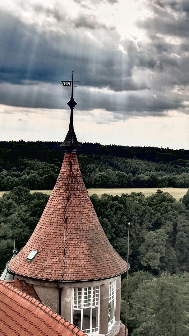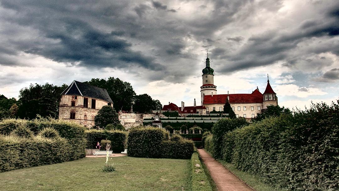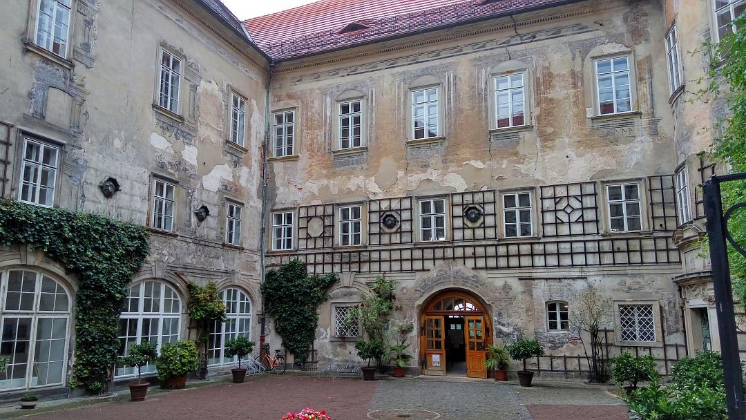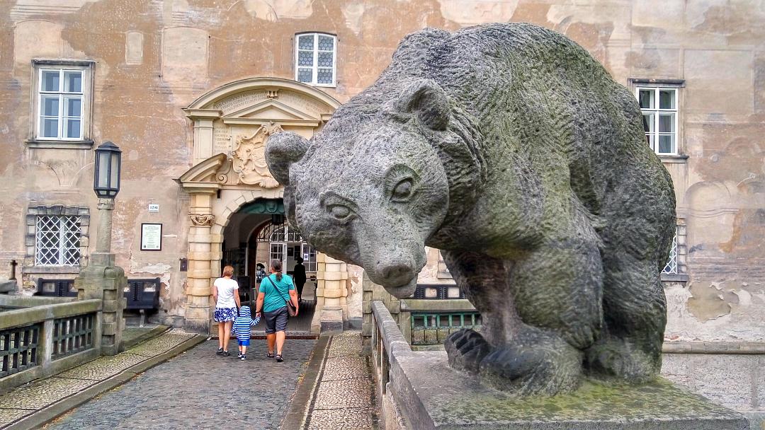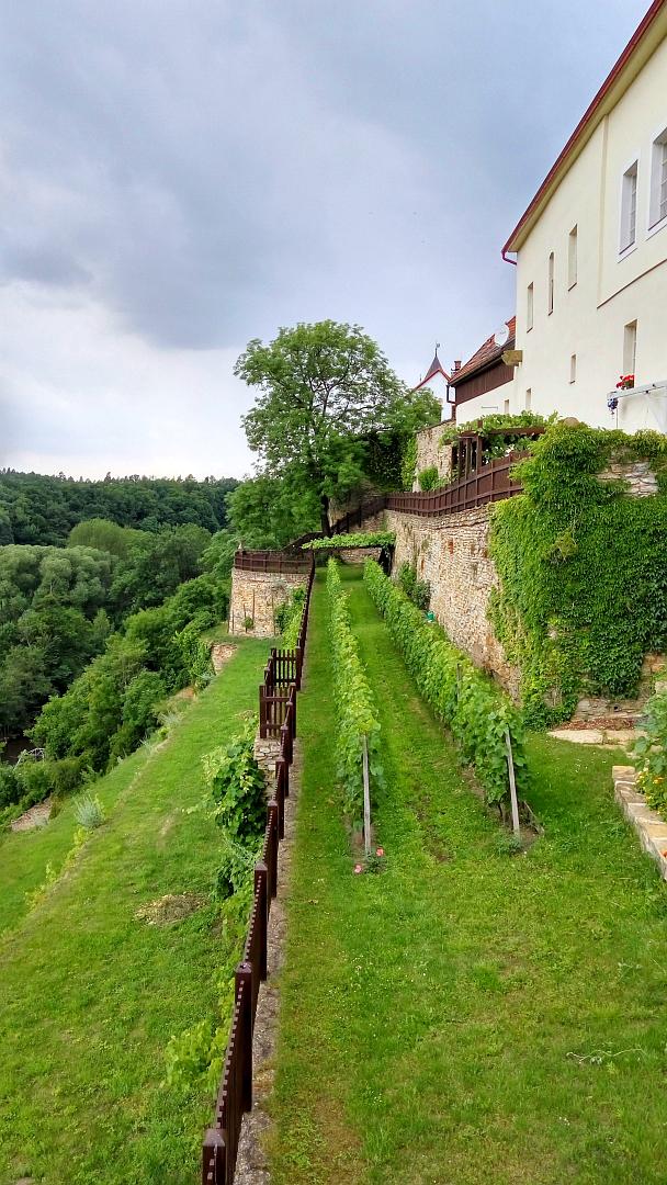 Seběhli jsme po naučné stezce na Pavlátovu louku, kde právě probíhal letní dětský tábor a pokračovali dále po zelené značce směrem k Novému Městu nad Metují. Cestou nás ještě překvapil Divočaur a Branka přání a už jsme stoupali ulící Pod Hradbami pod hradbami. Obešli jsme Husovo náměstí, navštívili Kostel Nejsvětější Trojice a vydali se na zámek. Tady jsme vyšplhali na zámeckou věž s nádherným rozhledem na náměstí, nádvoří i terasovitou zahradu. Ostatně po zahradě, na které se nachází Jurkovičův krytý dřevěný most a barokní sošky trpaslíků od Matyáše Brauna jsme se potom i prošli. Nakonec jsme si prohlédli expozici automobilů Velorex.
