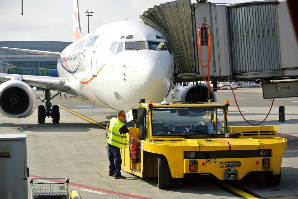 Po přesunu do nové části letiště (Terminál 1 a 2) jsme pendlovali mezi stojánkami, u kterých se něco dělo a bylo nám vždy vysvětleno, co se tam vlastně děje. Tak jsme byli svědky nakládky a vykládky kufrů i jiného nákladu, přirolování letadla ke stojánce a jeho napojení na externí zdroj elektrické energie (po přistání), odtlačení letadla tahačem od stojánky a jeho přetažení jinam, tankování letadla, ... Spousta zajímavých informací!