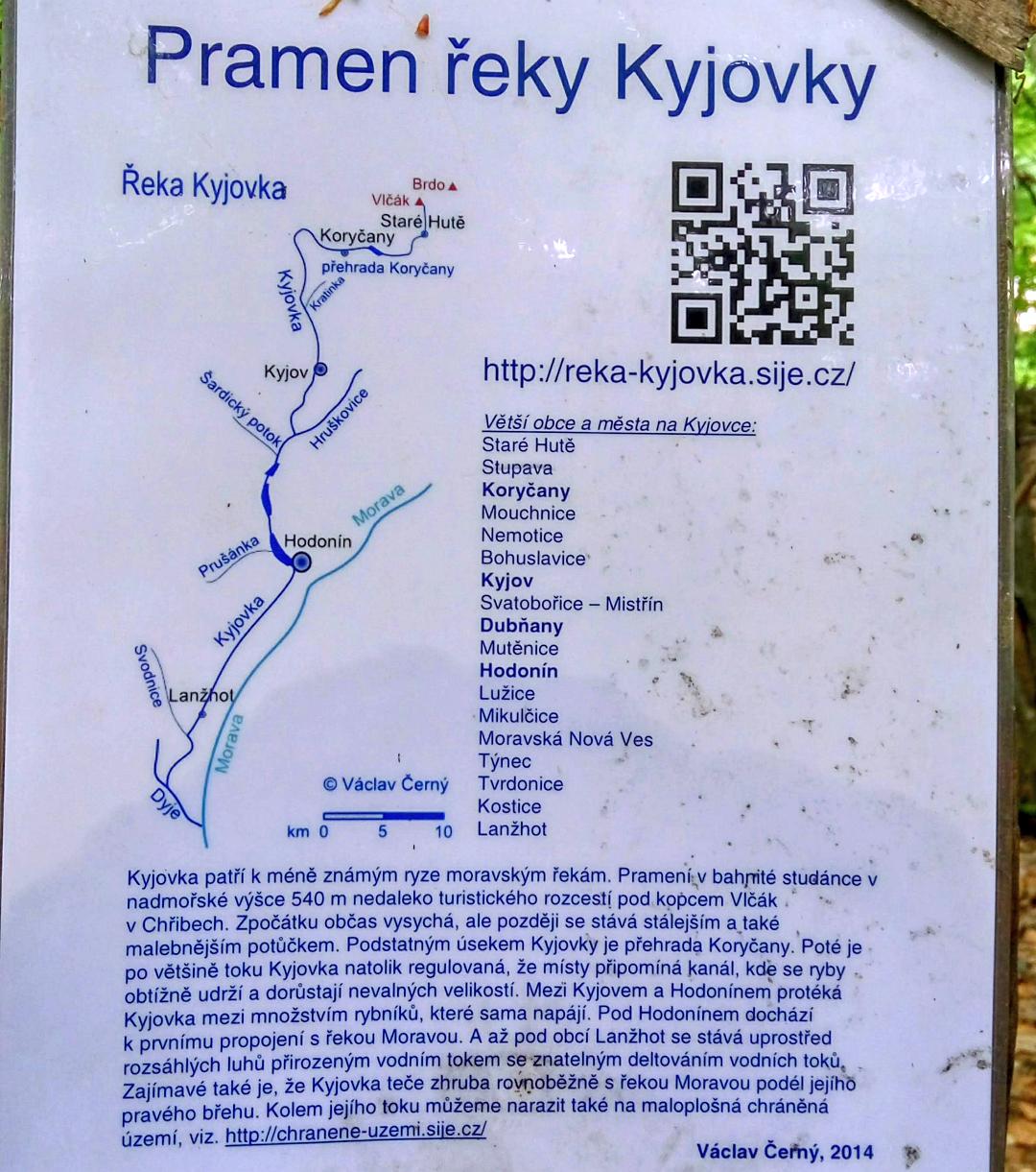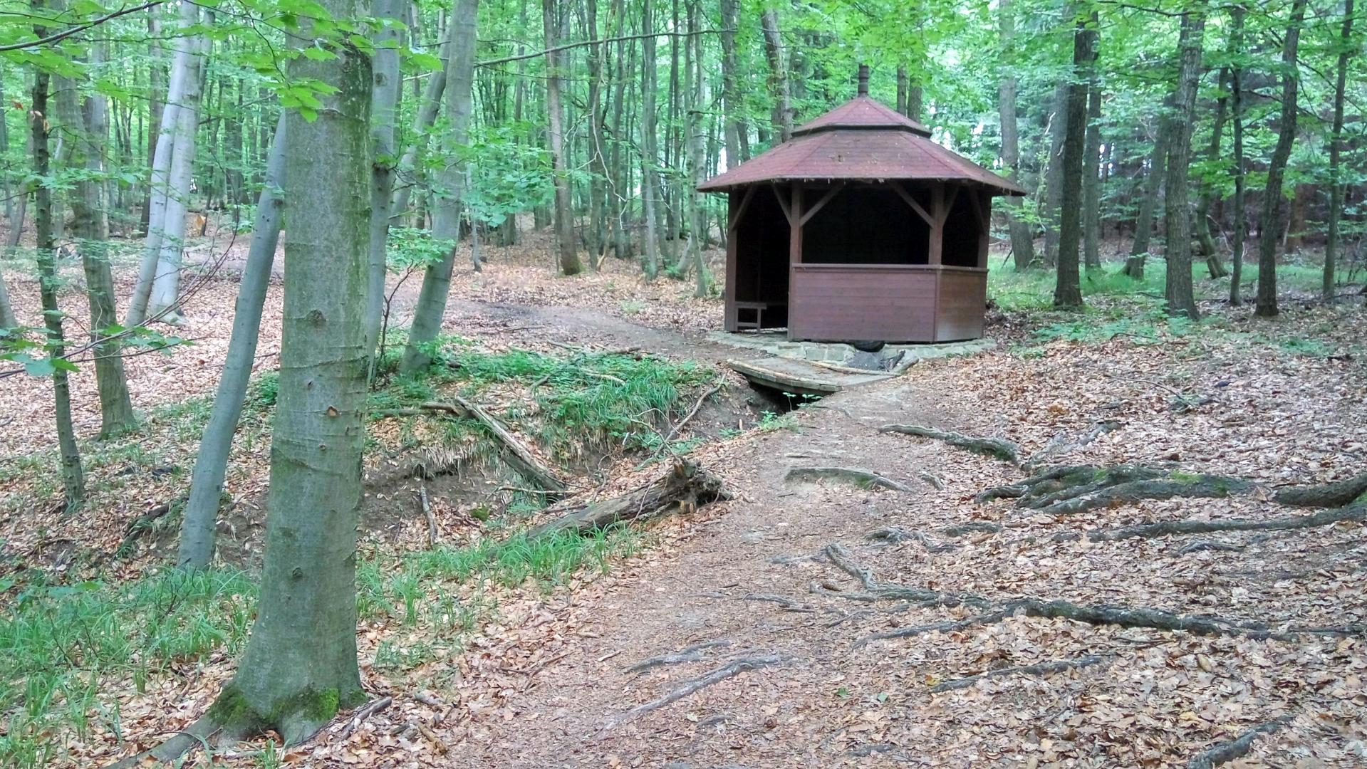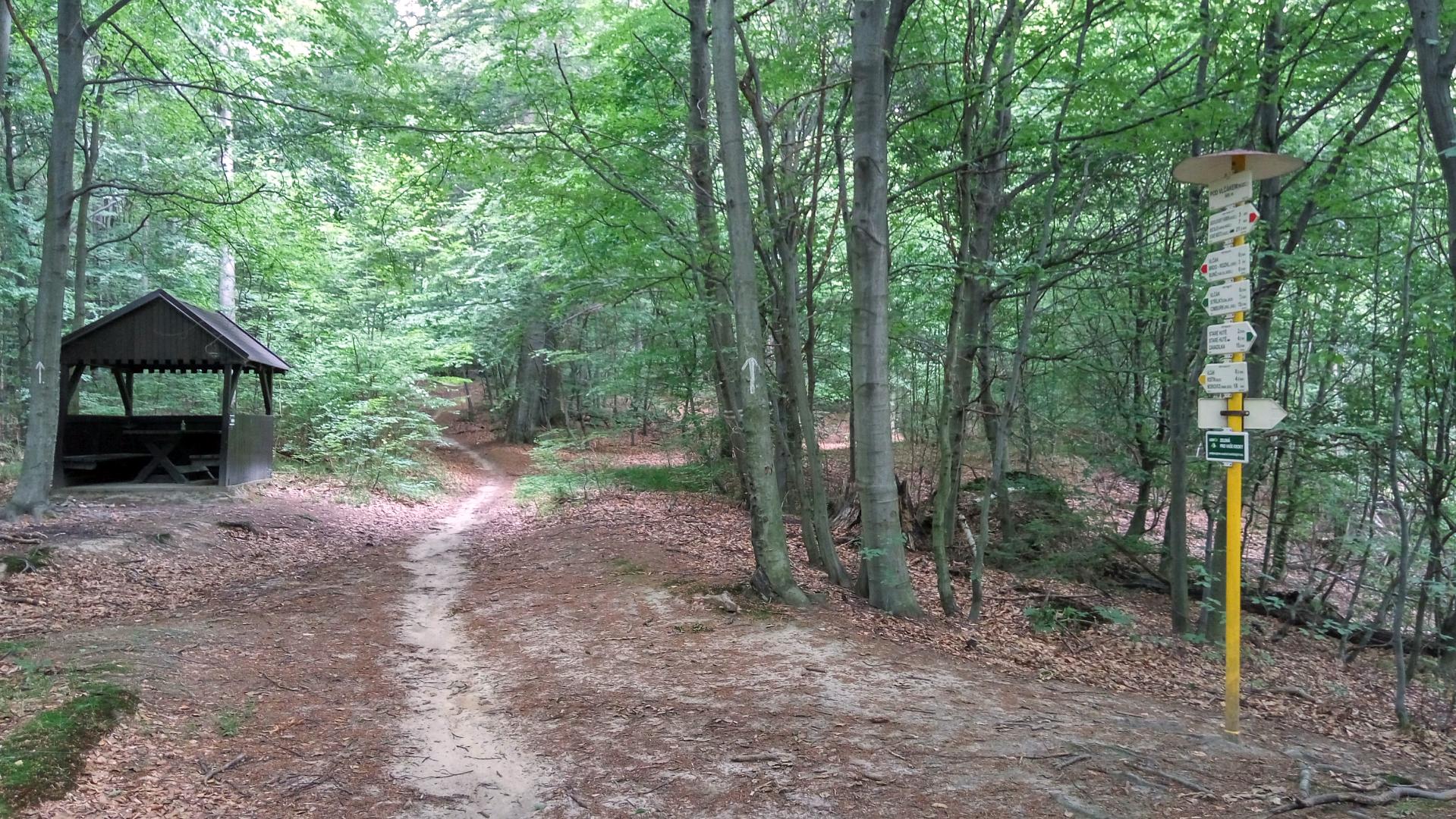 Vyrážíme do kopečka po zelené a už po pár metrech míjíme v místech, kde dříve stávala sklářská huť, mohutnou Malíkovu lípu s altánkem na odpočinek. Zhruba po kilometru na nás čeká studánka Na Loukách, u které je také turistický přístřešek. Těch ostatně dnes potkáme opravdu hodně! Po půl kilometru scházíme z asfaltové cesty vlevo a držíme se zelené turistické značky, která pomalu, ale vytrvale šplhá údolím Kyjovky až k rozcestníku Pod Vlčákem (přístřešek). Spojují se zde zelená, červená a žlutá značka a společně vedou kolem turistického přístřešku Vlčák a pramene Kyjovky k rozcestí Vlčák, které je přímo u stejnojmenné samoty.