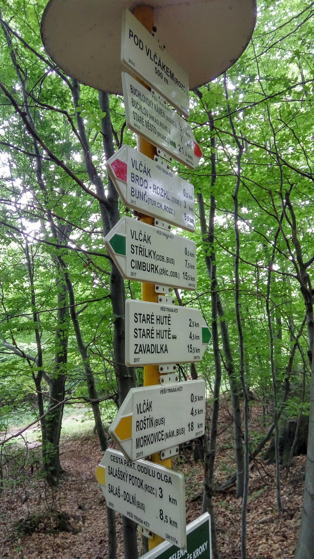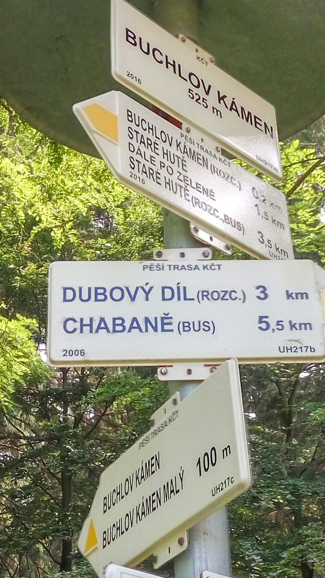 Od Buchlovských kamenů jsme seběhli zpět na rozcestí pod nimi a dále dolů po žluté do Starých Hutí k autu. Jediná nevýhoda této krásné trasy je, že po cestě není žádná hospůdka nebo jiná možnost občerstvění. Pití a Tatranku je tak nutno nést s sebou v baťůžku.