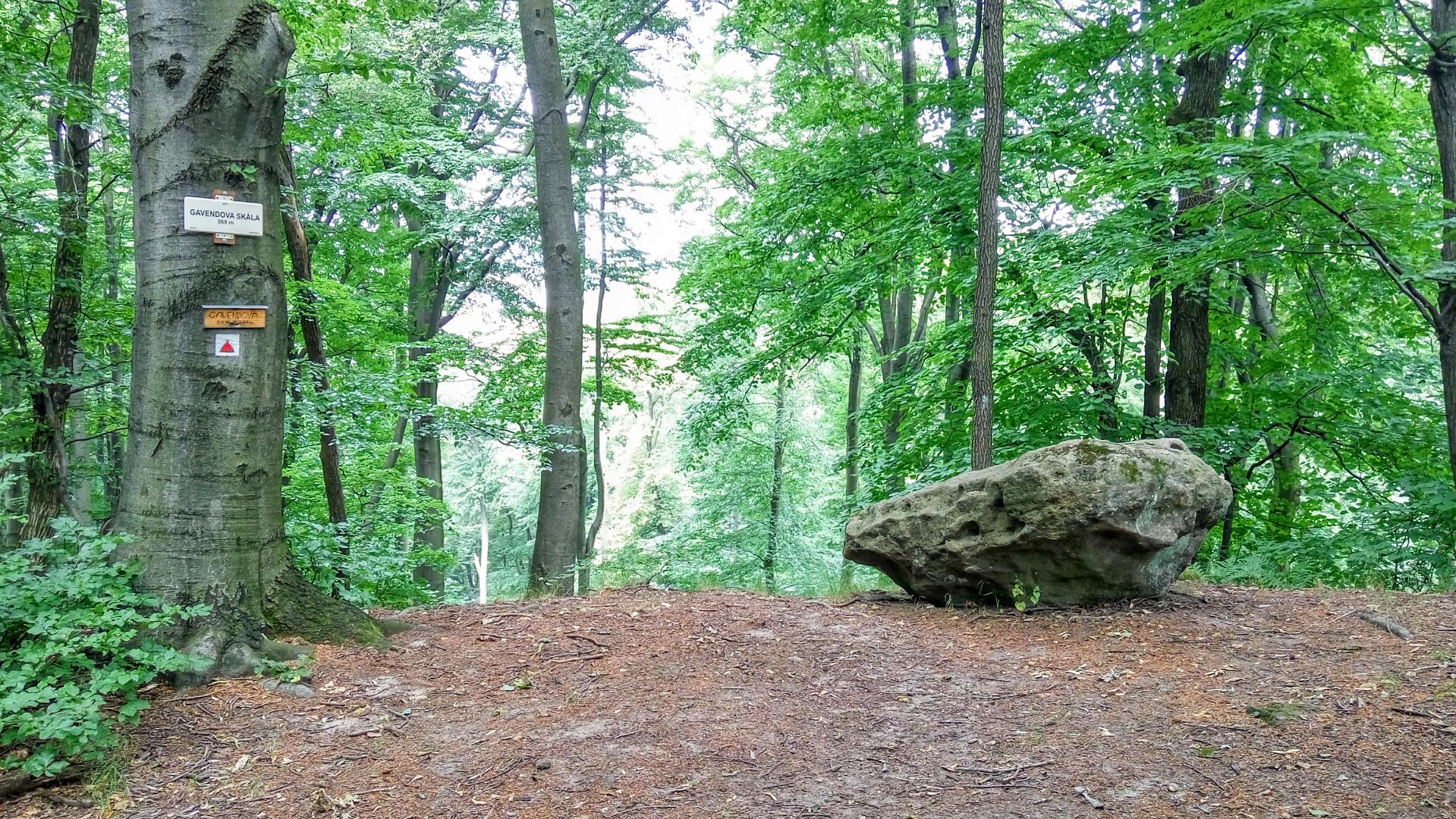 Skoro desetikilometrová pohodová procházka méně známou částí Chřibů. Auto jsme nechali na konci Starých Hutí, kde se dá s trochou štěstí najít místo na zaparkování tak, aby auto nikomu a ničemu nevadilo. Vyrážíme vlastně z nejníže položeného místa procházky, ale i tak nás na Gavendovu skálu čeká jen pohodových 150 výškových metrů.