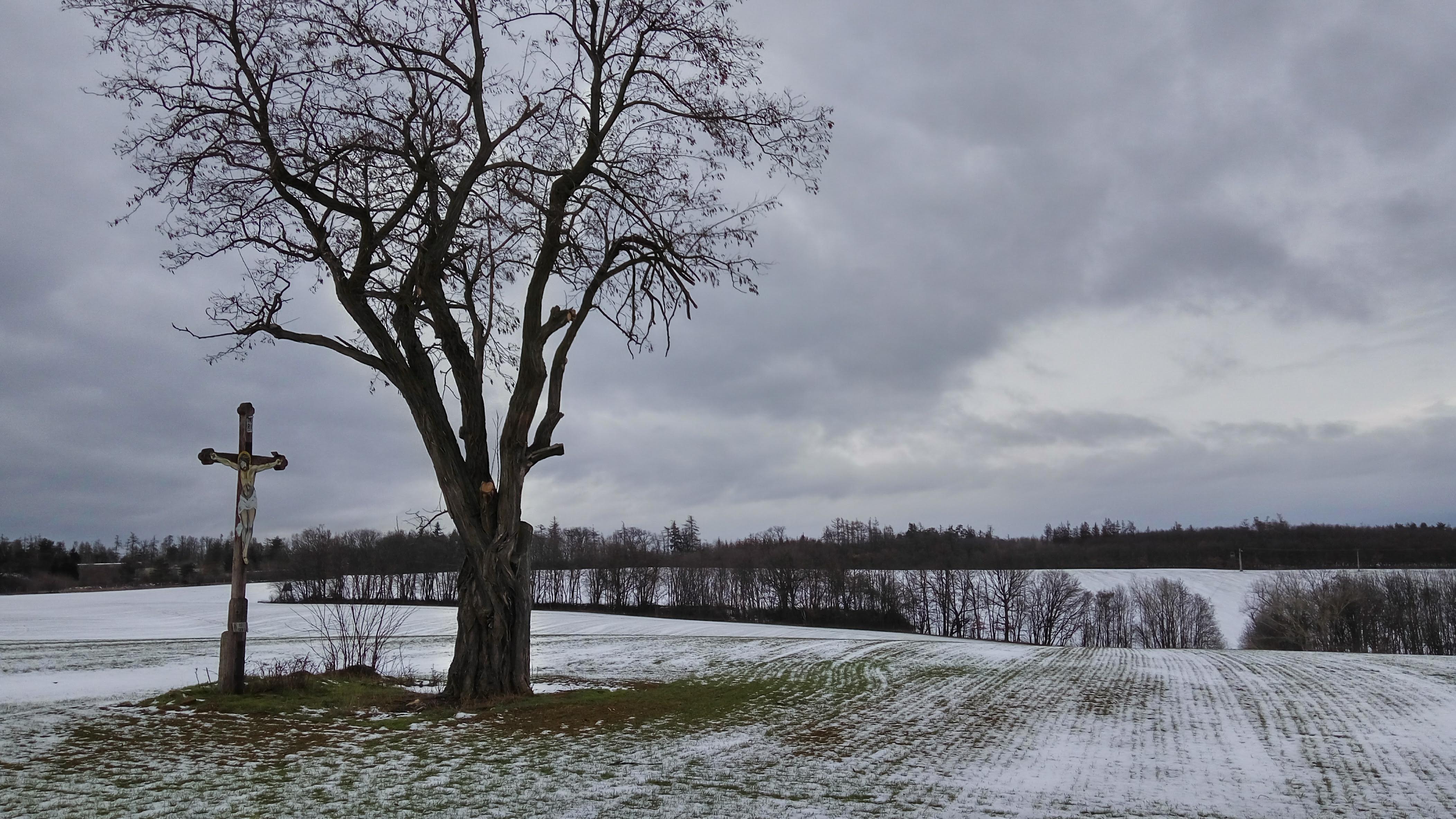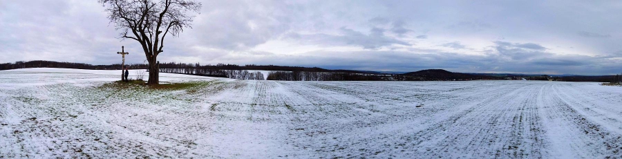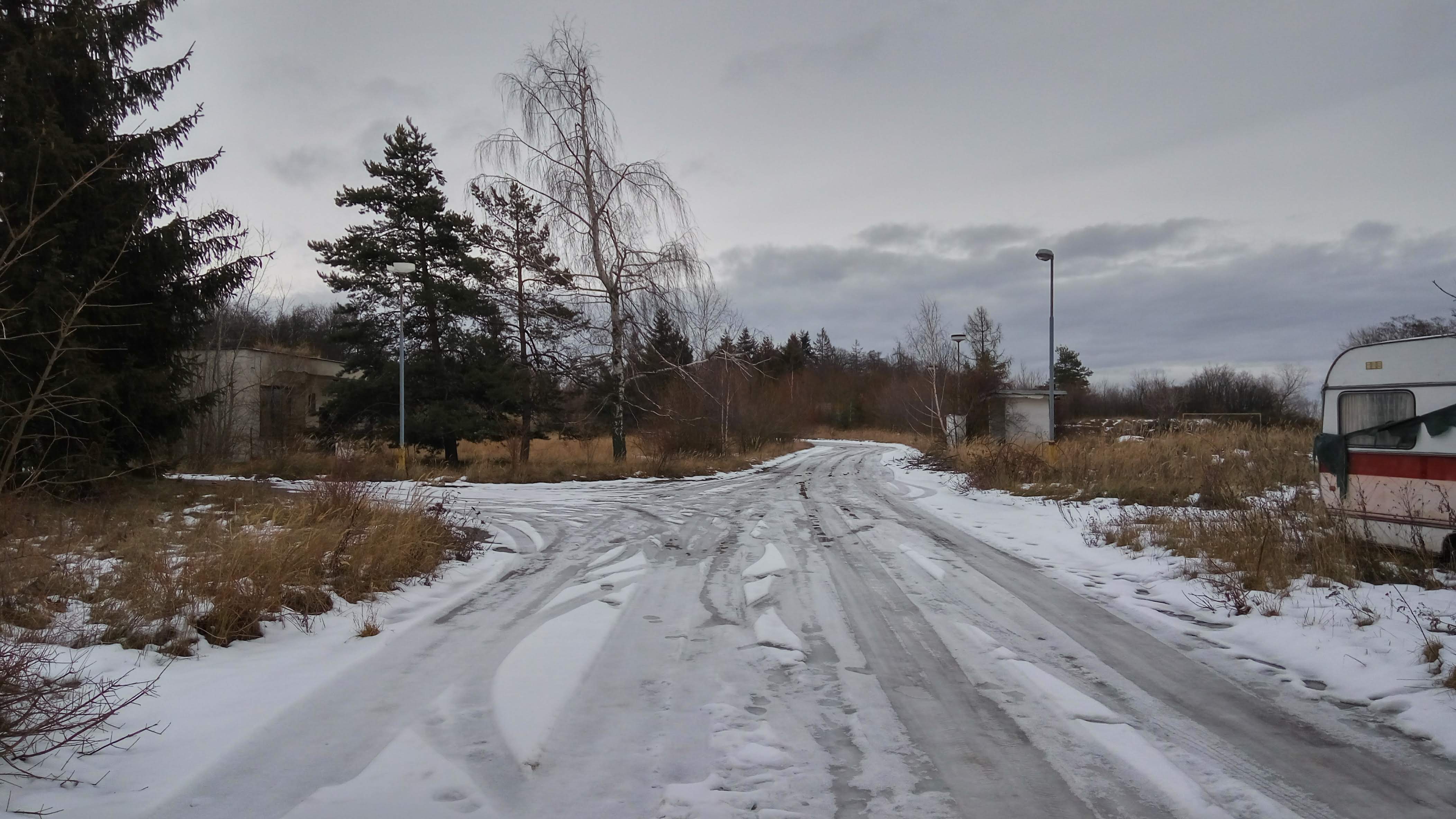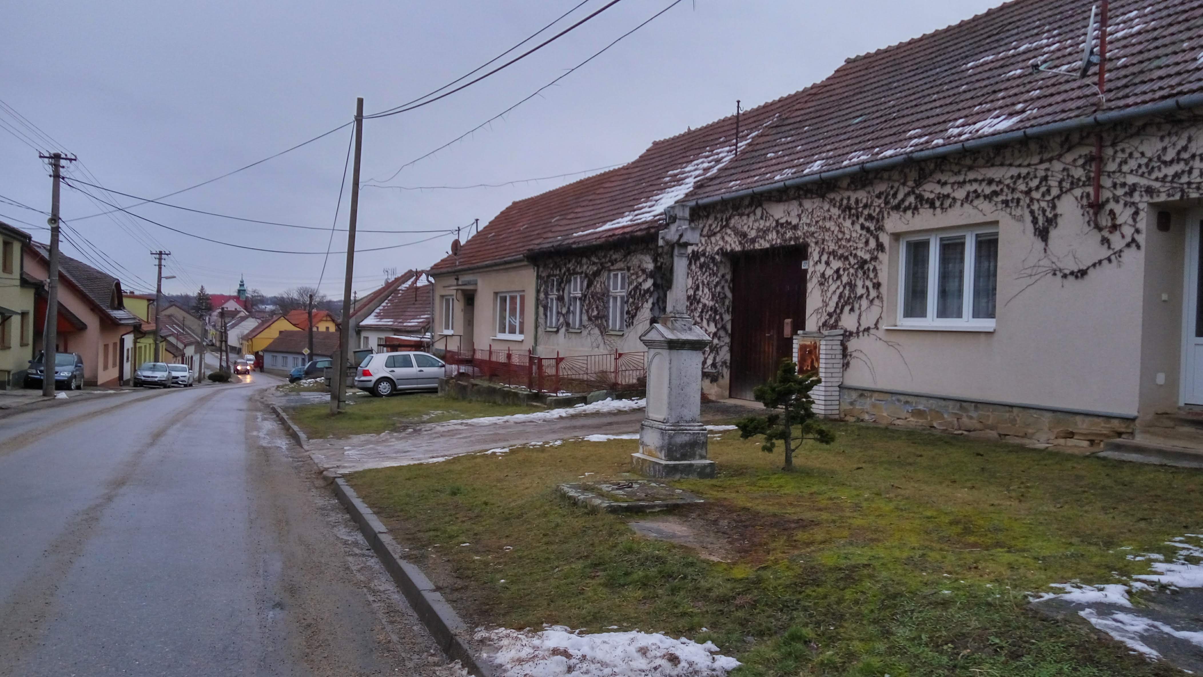 Auto jsme nechali za samoobsluhou Enapo - jedno auto se tam vejde a v neděli určitě nebude zásobování nijak vadit. Vyrazili jsme po ulici Armádní směrem v vyhlídkovému místu, které jsem podle dřevěného kříže nazval Plechový Ježíš. Výhled je odtam opravdu parádní, Pálava jako na dlani. Pokračovali jsme dál k bývalému vojenskému prostoru Hvízdalka, který jsme si chtěli prohlédnout. Bohužel nás přivítala zavřená brána. O kus dál chybělo kousek drátěného plotu, takže jsme vlezli dovnitř (čímž nikoho k ničemu nenabádám) a z venku si prohlédli několik budov v dezolátním stavu. Na některých bylo vidět, že byla zahájena přestavba, ale asi hodně dávno. Oblast ohrazená betonovým plotem byla uzavřená, ale podle stop ve sněhu bylo vidět, že tam občas zajíždí auta. Dovnitř jsme se tedy nenabourávali, musíme se spokojit f fotkami a popisem od jiných průzkuníků (viz odkaz níže).