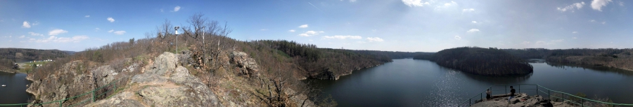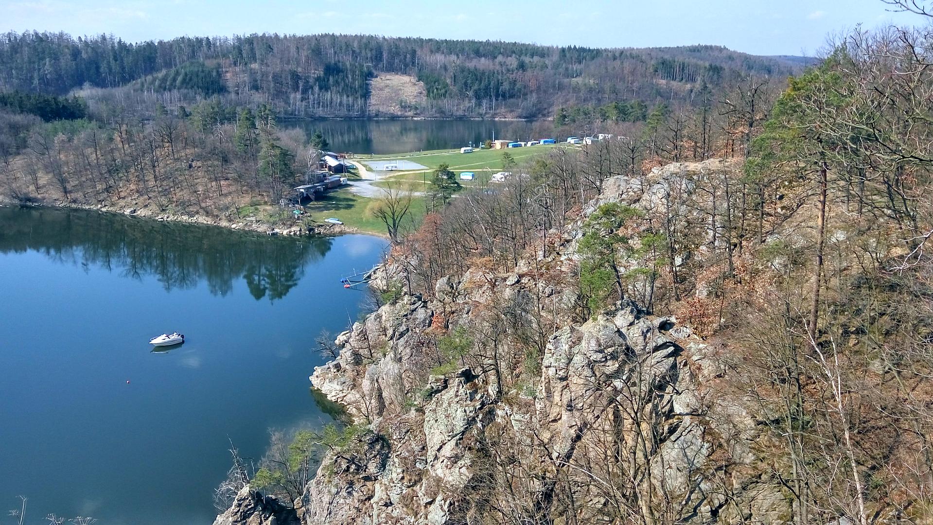 Autem jsme dojeli do Hartvíkovic a zaparkovali u recepce autokempu. Následně jsme udělali malé kolečko přes Wilsonovu skálu, která nám nabídla parádní výhledy.