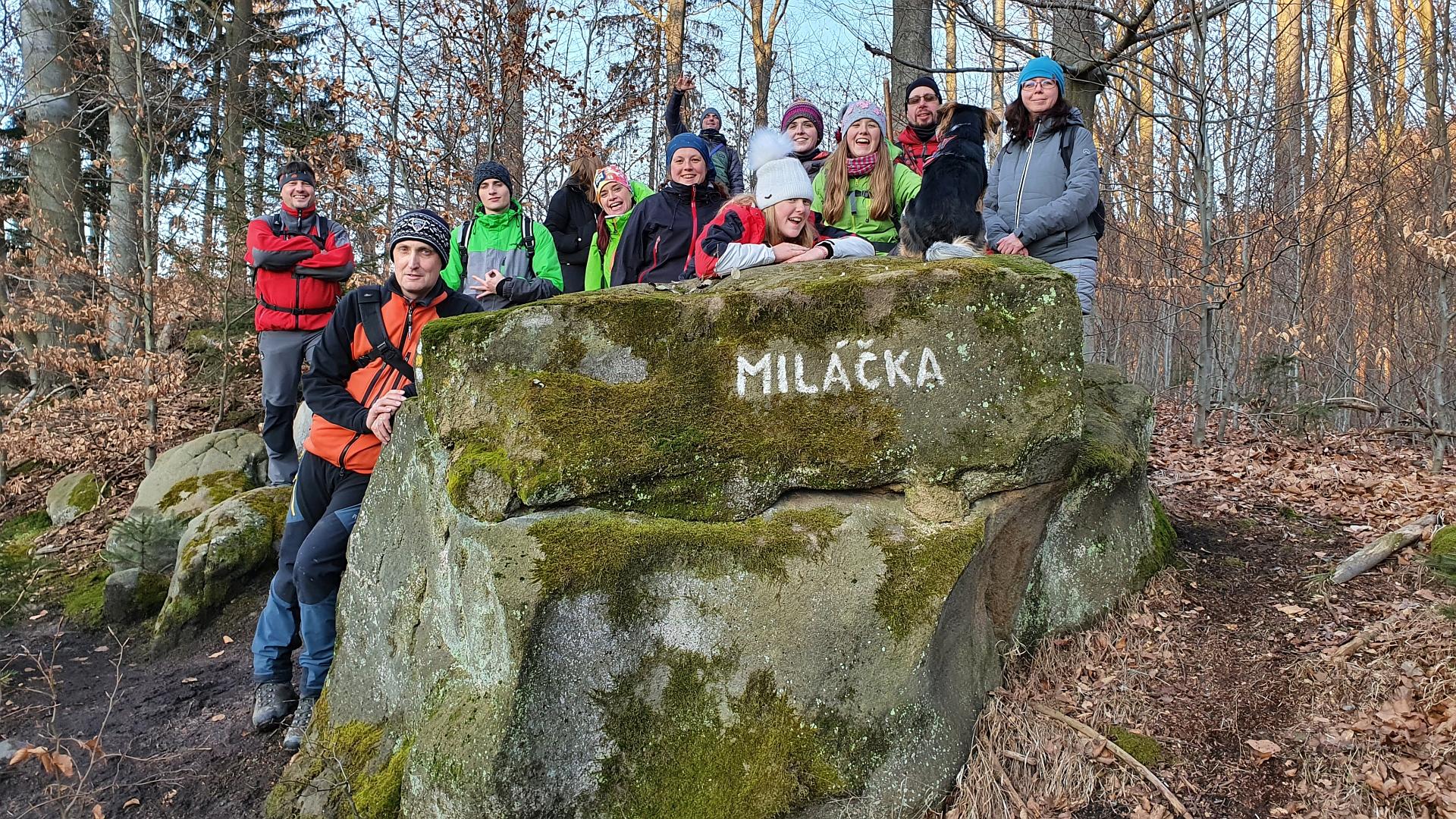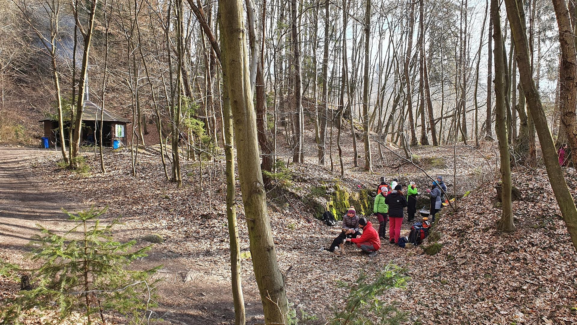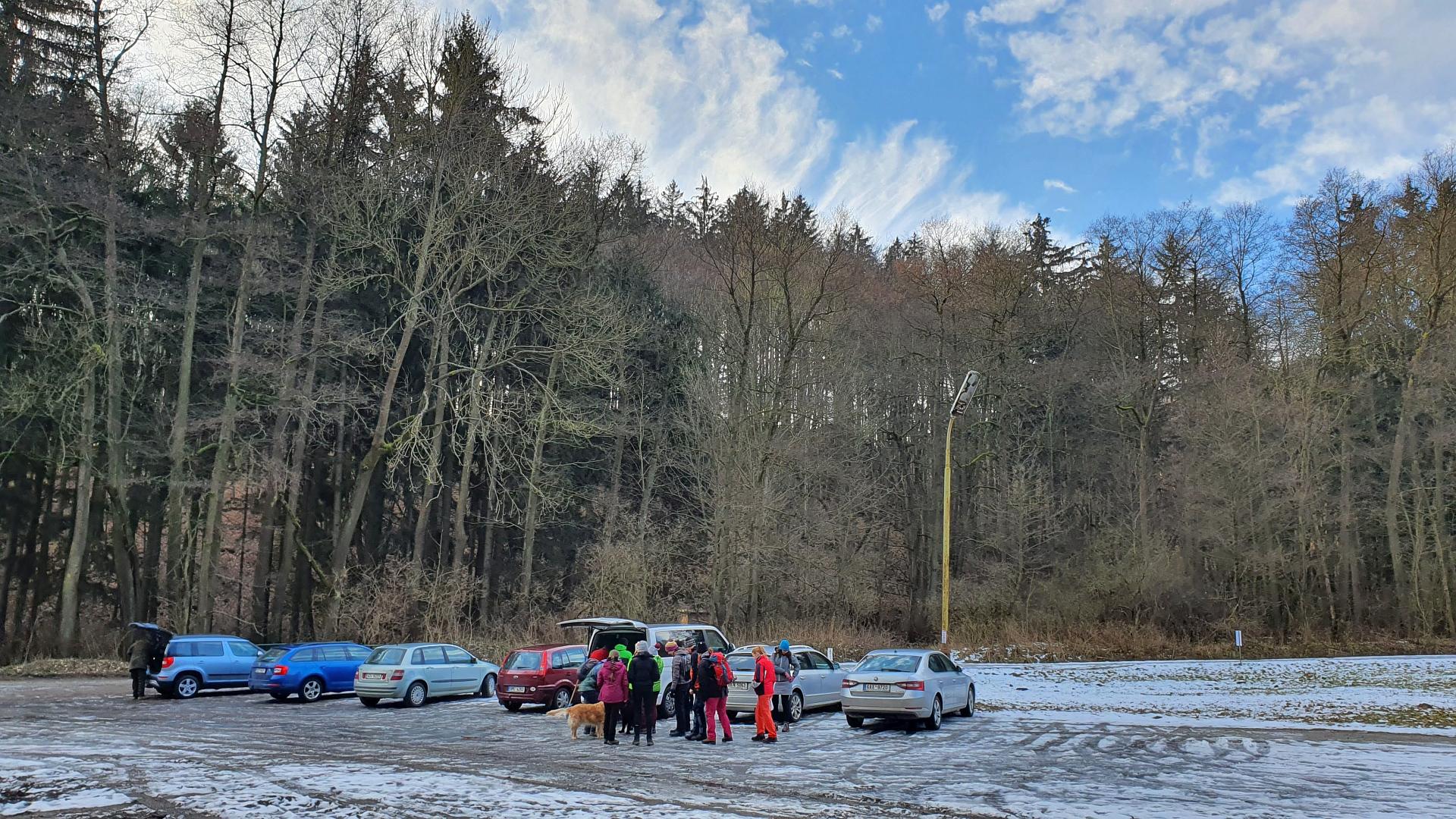 Volba na lokalitu padla z toho důvodu, že je v podstatě stejně dobře dosažitelná jak z Brna, tak i ze Zlína. Vyráželi jsme z parkoviště Lubná u Rozsypalovy lesní osady a oběd měli naplánovaný hned o 300 metrů dál. Byly pro to tři důvody: