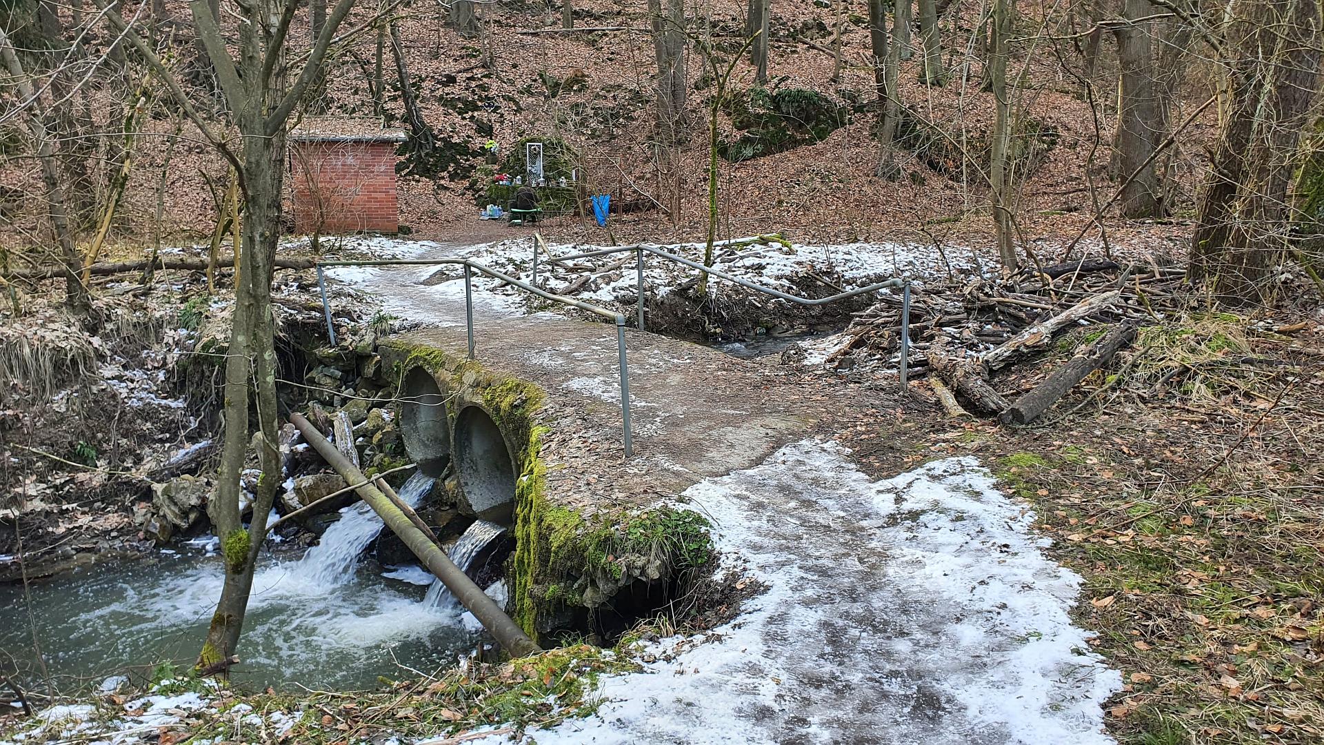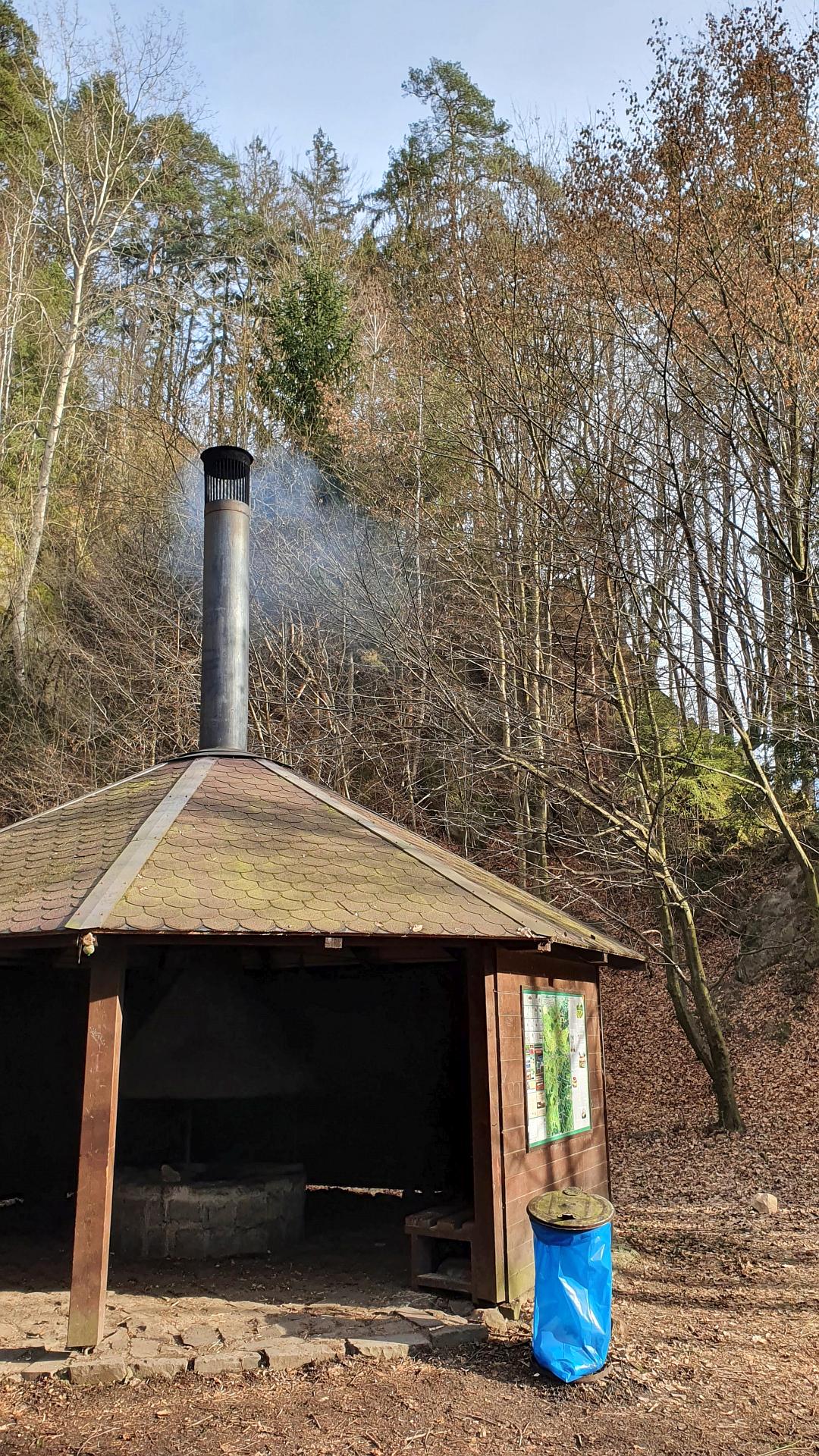 - Po těch 300 metrech je pěkný přístřešek s ohništěm, který byl však obsazený, takže jsme nakonec vařili kousek od něj ve zbytcích násypny bývalého lomu.