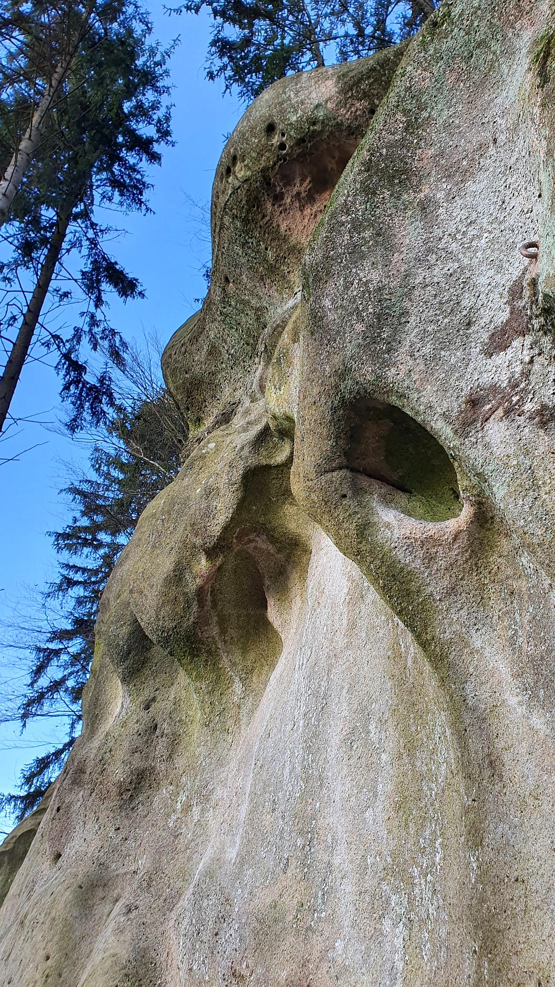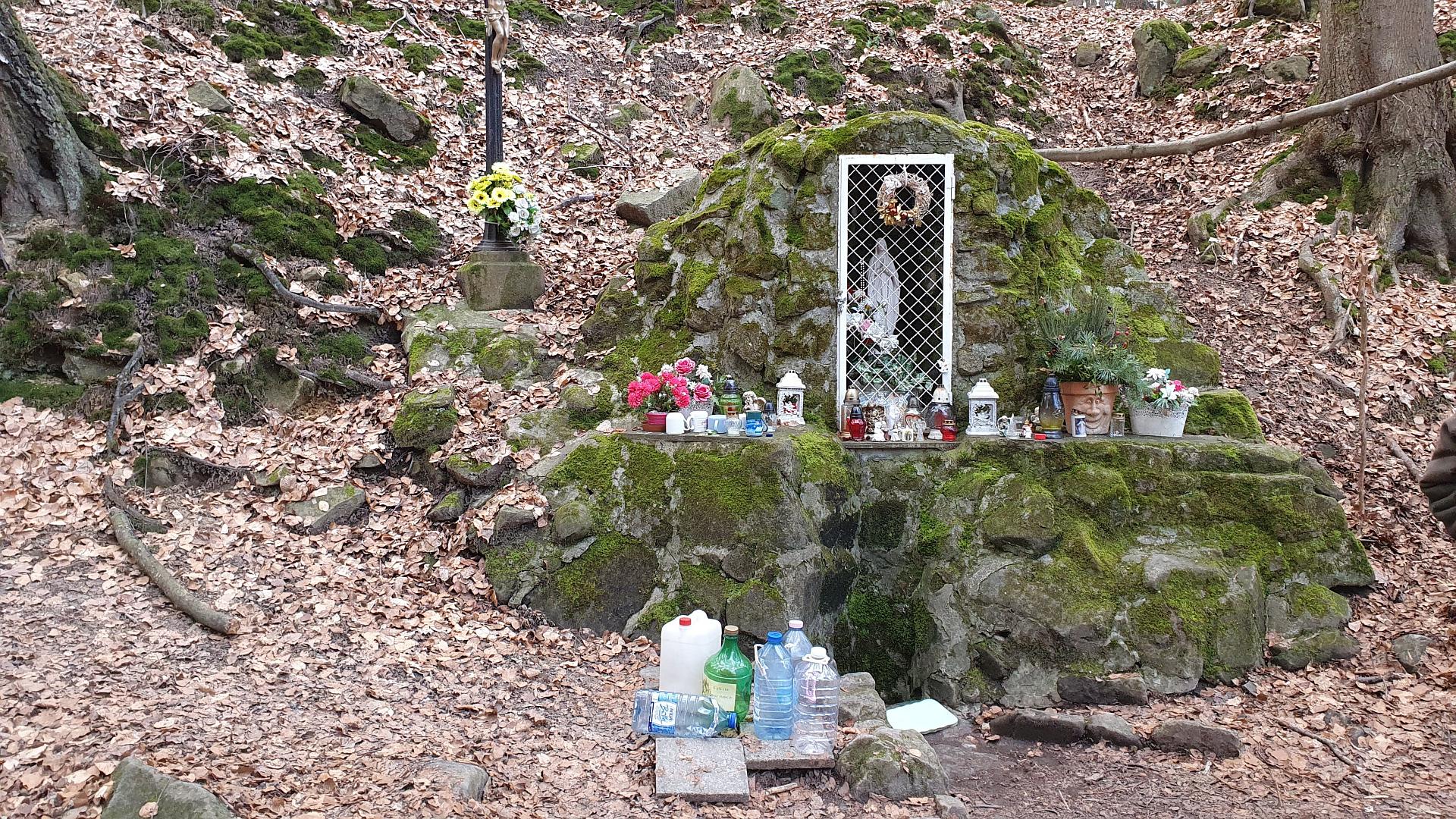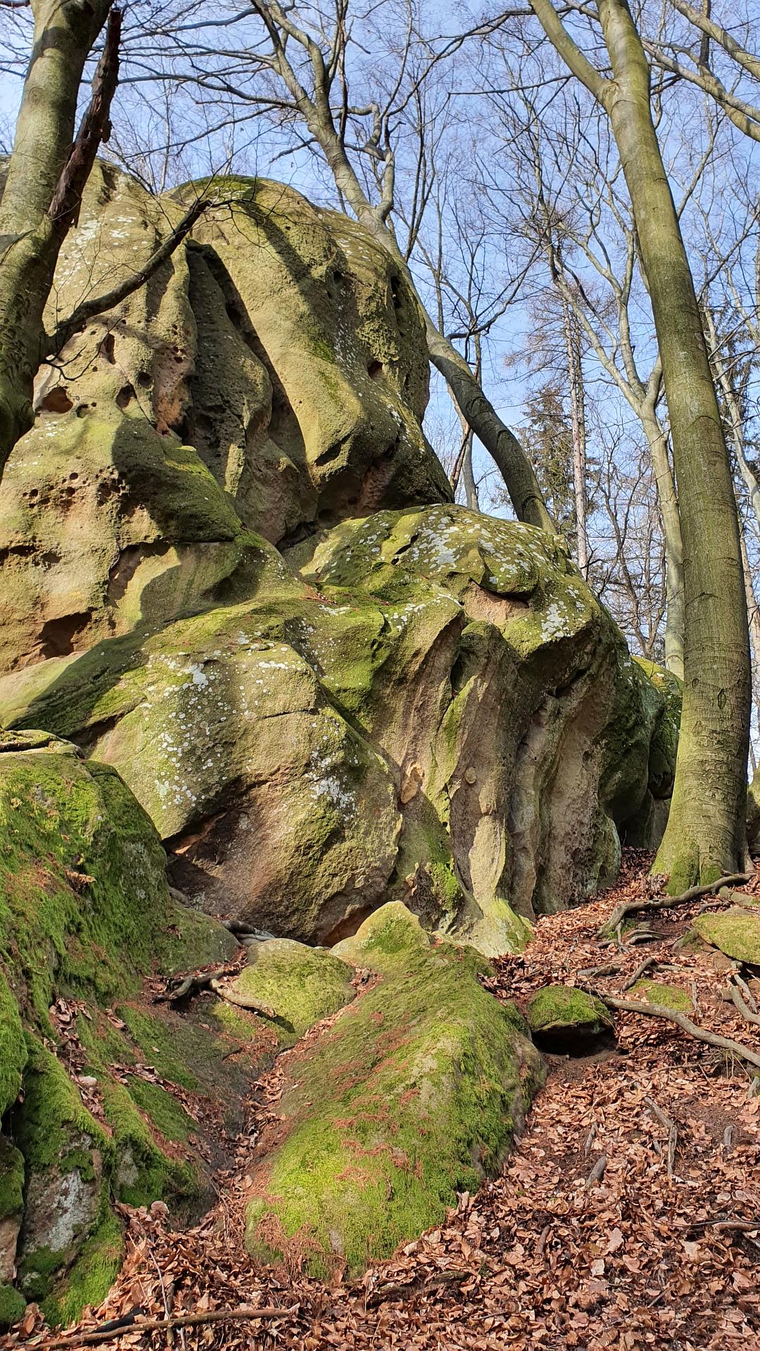 Odtud jsme po lesní silničce klesali až k Trvajově studánce, kde jsme se napojili na zelenou a na hřebeni žlutou turistickou značku a vystoupali až na kopec Březová. No a následovalo závěrečné klesání zpět do Kudlovické doliny – kolem skalního města s pěkným tábořištěm, Zuzančiny studánky se stejnojmennou geocache GC2HCCE a skalního útvaru Miláčka dolů k silnici, po které jsme se vrátili zpět do výchozího bodu výletu.
