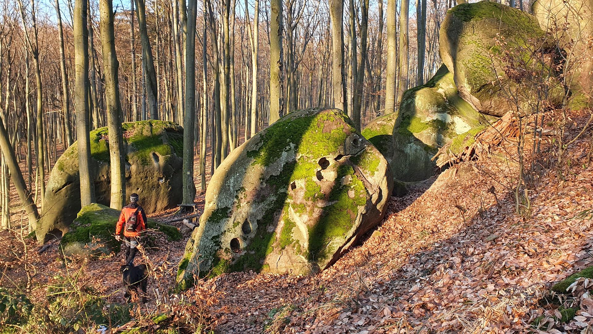Procházka tak na 3 až 4 hodiny (i s okouněním) ve východní části Chřibů nabízí jak místní typické bukové lesy s osamocenými pískovcovými skalními útvary, tak i studánky, jeskyni, několik přístřešků a, jako exkurzi do historie, staroslovanské mohylové pohřebiště. Počítejte s trochou bláta – naštěstí je v Kudlovické dolině také Kudlovický potok, kde se dá udělat základní očista.