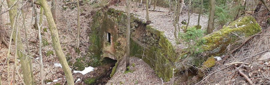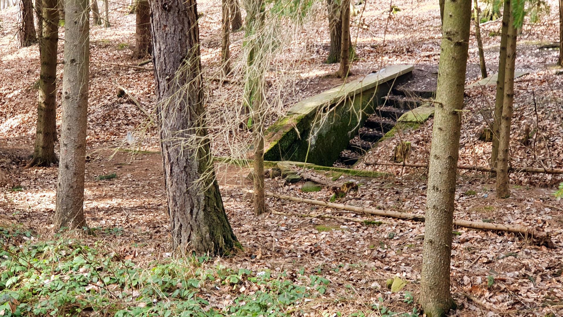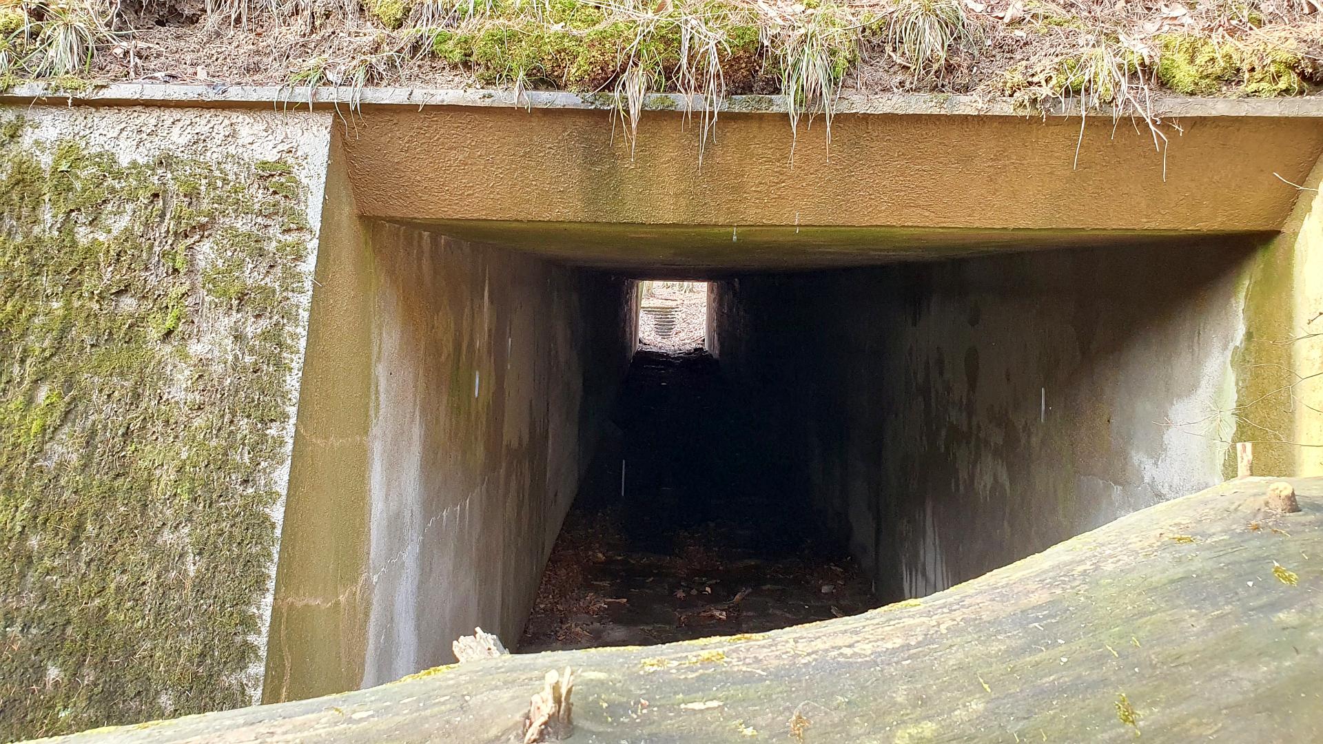 Koukneme se na poněkud zanedbaný Památník padlých hrdinů a jdeme kolem dálničního mostu vedoucího odnikud nikam odlovit geokešku GC2FX8J Lesní podchod. Prostě si představte les, v něm na jednom místě vybetonovaný vstup se schody pod zem a o 25 metrů dál výlez. Pod pár stromy. Jeden vede alespoň pod lesní cestou, druhý ani to ne! Měla tu vést dálnice původně navržená Janem Antonínem Baťou, pro kterou všechny ty mosty, podchody a propustky stihli vybetonovat, ale na vlastní dálnici už nedošlo. Nejdřív kvůli válce, pak kvůli komunistům. A později původně projektovanou trasu nahradila dnešní D1. Zajímavé je, v jak dobrém stavu neudržovaný beton i po 80 letech stále je.