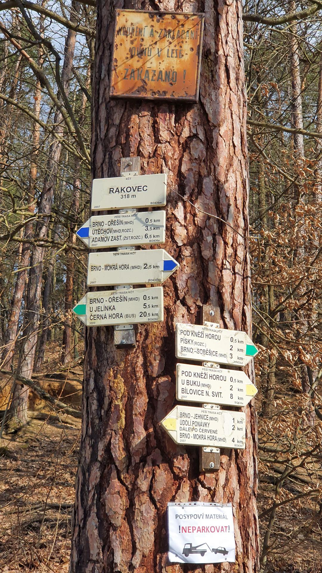 U sportoviště Sokola Ořešín zvaného Rakovec je v provozu Sokolské okénko. A u něj přelidněno, takže pouze procházíme. Rakovecké údolí nabízí několik malebných tůněk a rybníčků, studnu U Potomských a větší rybníček zvaný Mates. U něj je jednak keška GC8JPT2 Mates, ale také rozcestí Pod Kněží horou. Na Kněží horu si necháme zajít chuť, protože leží v již zapovězeném okrese Brně-venkov.