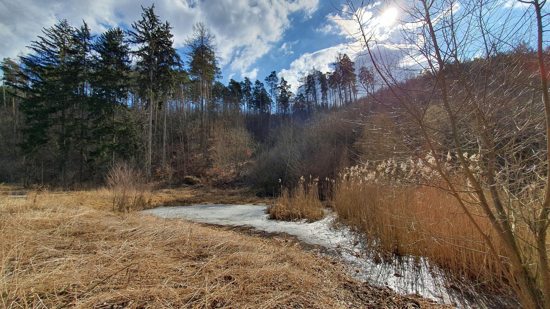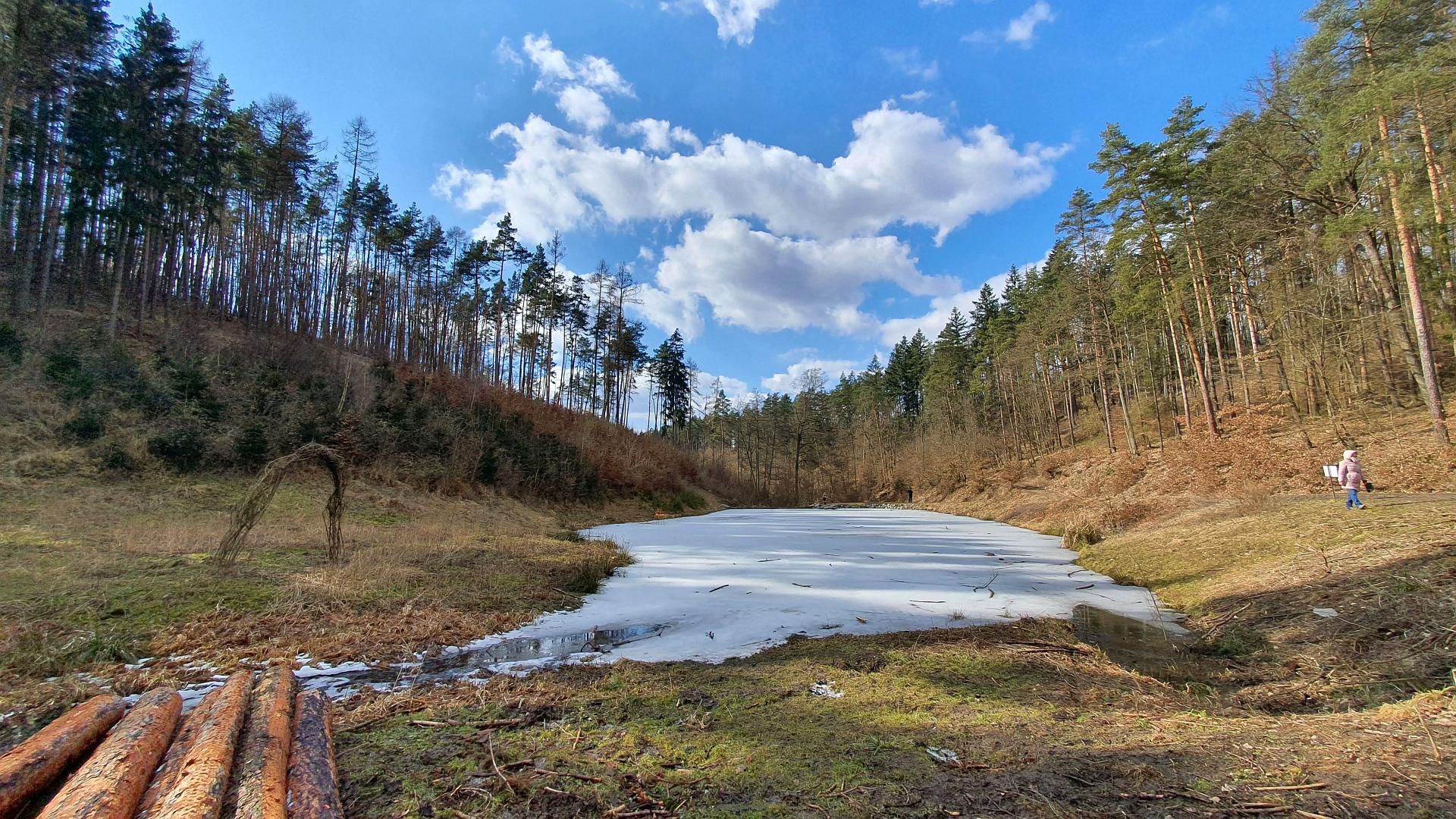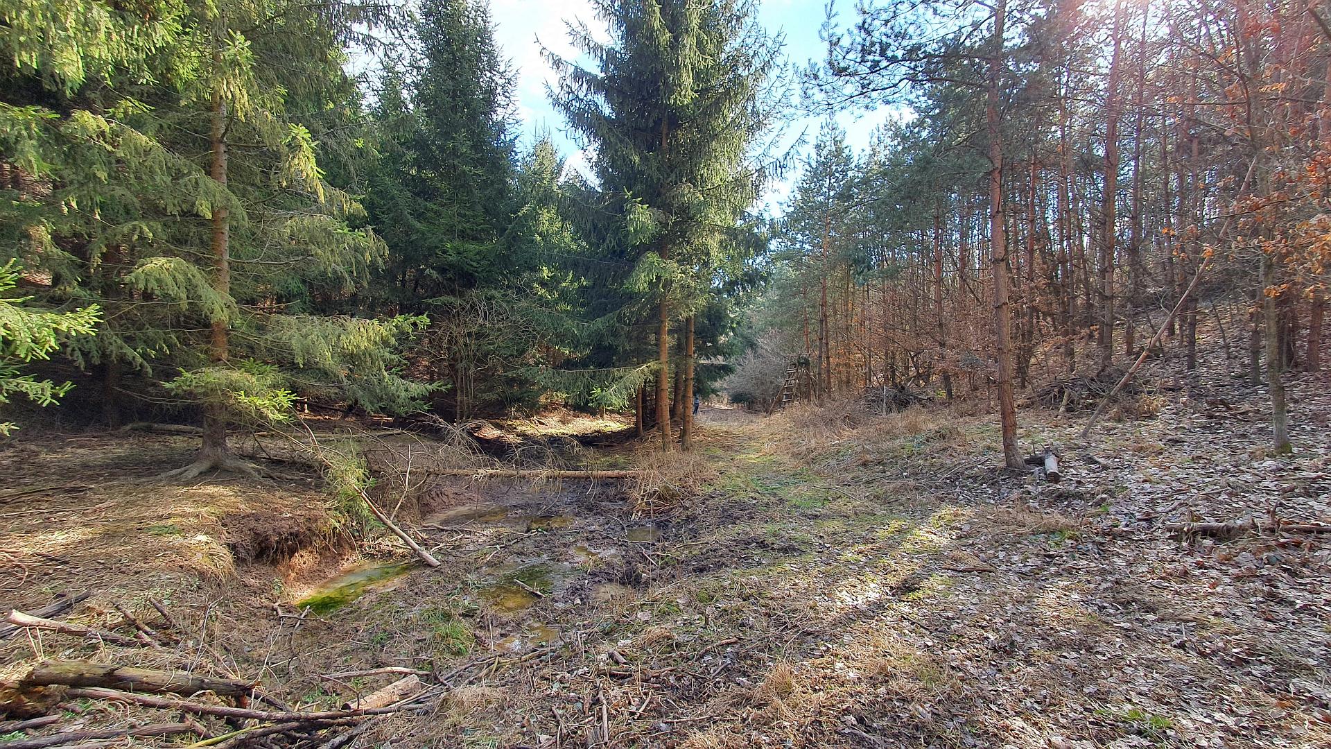 Od Hubertky jsme se vrátili zpět na modrou značku, abychom z ní hned zase odbočili doprava a dali se údolím bezejmenného potůčku zpět dolů do údolí Rakovce, které jsme dosáhli kousek nad Mokrou Horou. Zde už vede modrá turistická značka, která je trochu exponovanější (nic strašného) a po které se vracíme zpět k Sokolu Ořešín a autu.