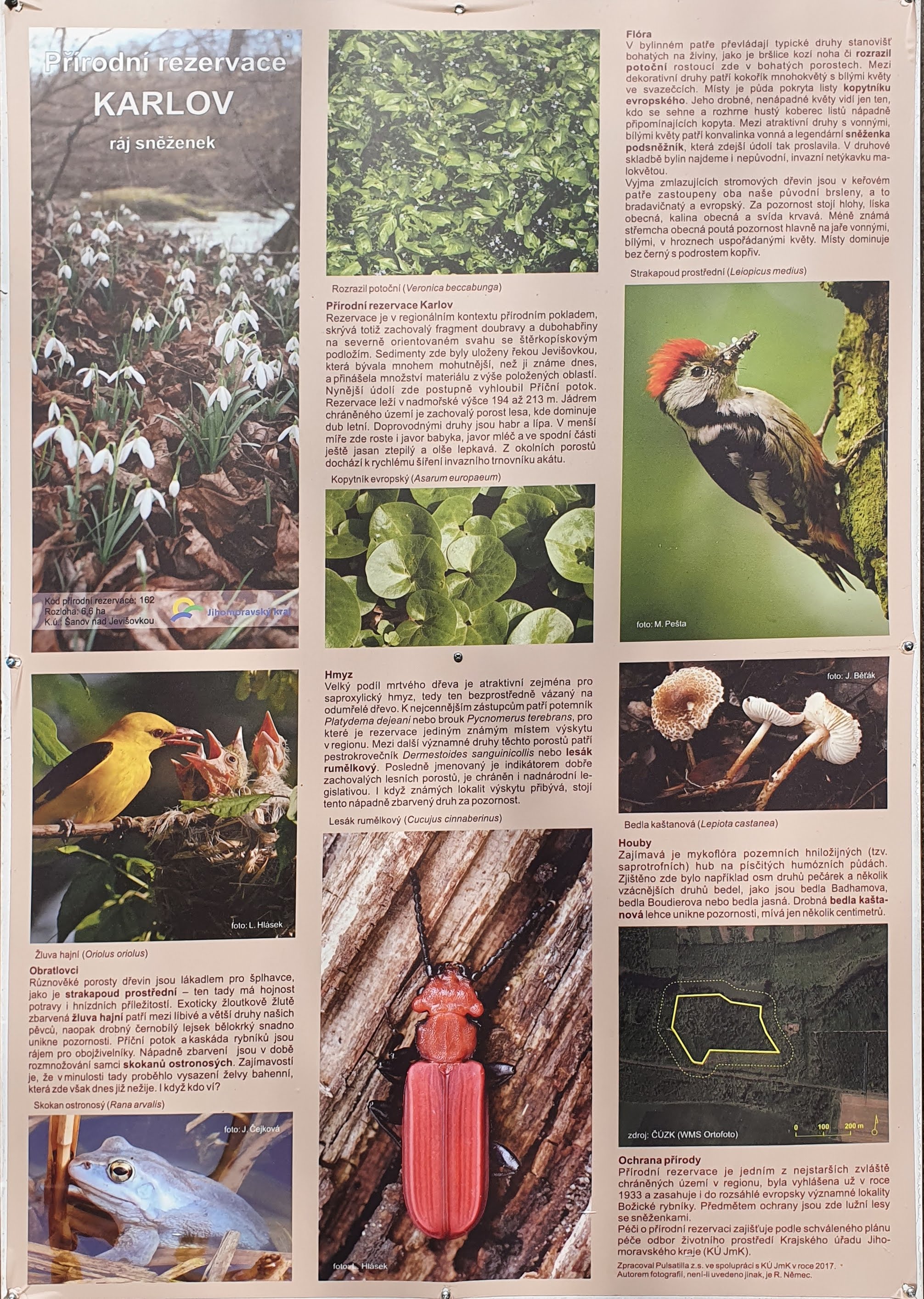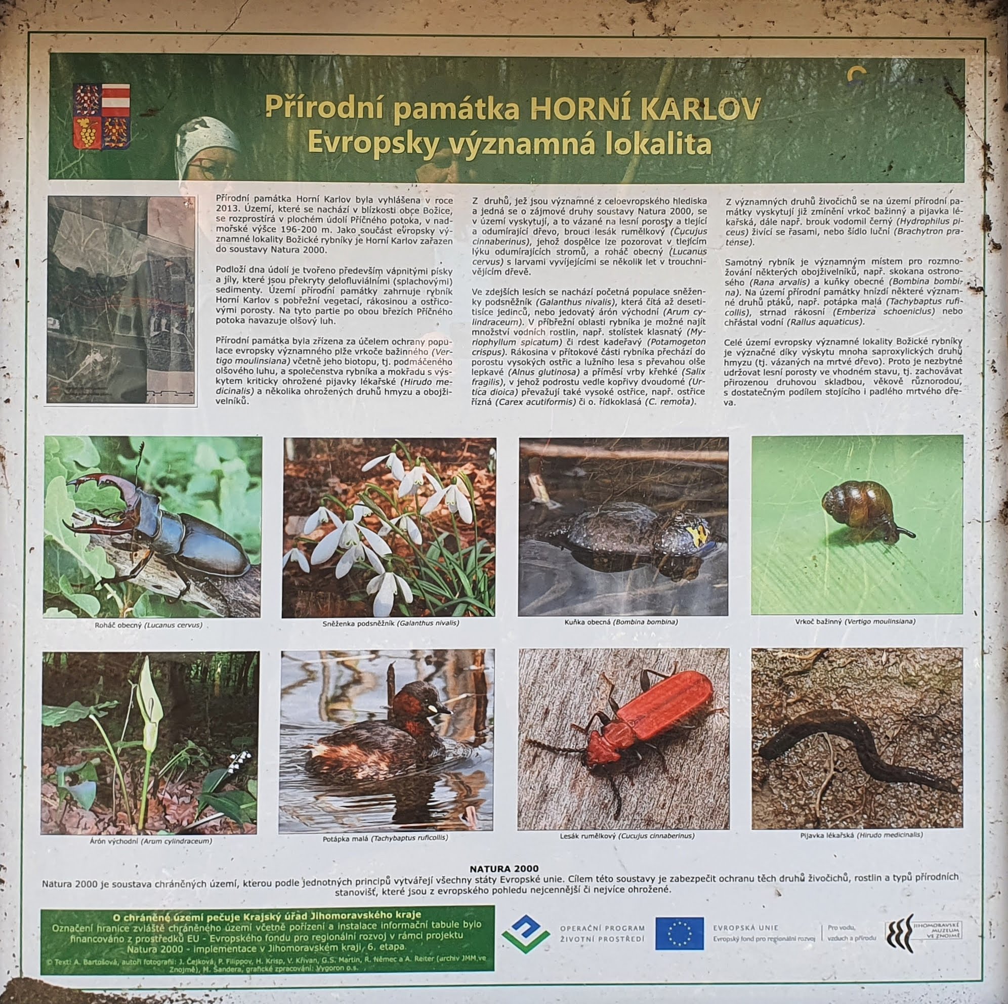 Parkovat se dá u žst. Božice a délka trasy jde upravit. Navštívíte-li naučnou stezku Údolí lásky na jaře (březen), odmění se vám koberci sněženek, křivatců žlutých, orsejů jarních, dymnivek plných, sasanek pryskyřníkovitých i hajních, fialek a spoustou dalších rostlinek, ale i zvířeny. Cesta totiž prochází okolo Přírodní rezervace Karlov a Přírodní památka Horní Karlov, ale jde protáhnout až k Přírodní památce Protržený rybník, což je mokřad, který obývá populace vzácného plže vrkoče bažinného. Jeho okraje lemují jasanovo-olšové lužní lesy. Vodní plochu hustě porůstá rákos obecný a další druhy mokřadních rostlin. Při břehu žije čolek velký, skokan skřehotavý, ropucha a skokan štíhlý.
