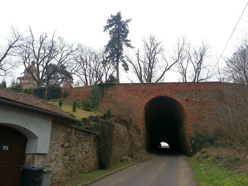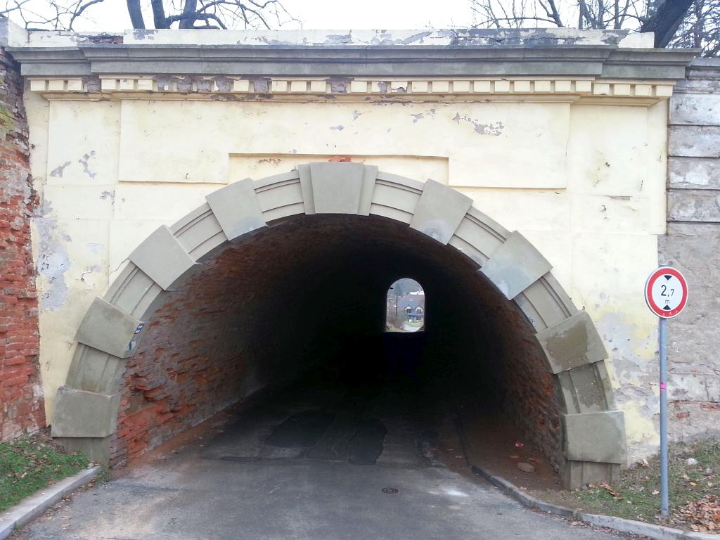 Klenutý tunel nechala postavit kněžna Marie Eleonora v místě původního příkopu, který byl zasypán roku 1772 v rámci posledních větších úprav zámku. Při té příležitosti byl také vytvořen anglický park. (V tunelu je ukrytá geocache ;-)