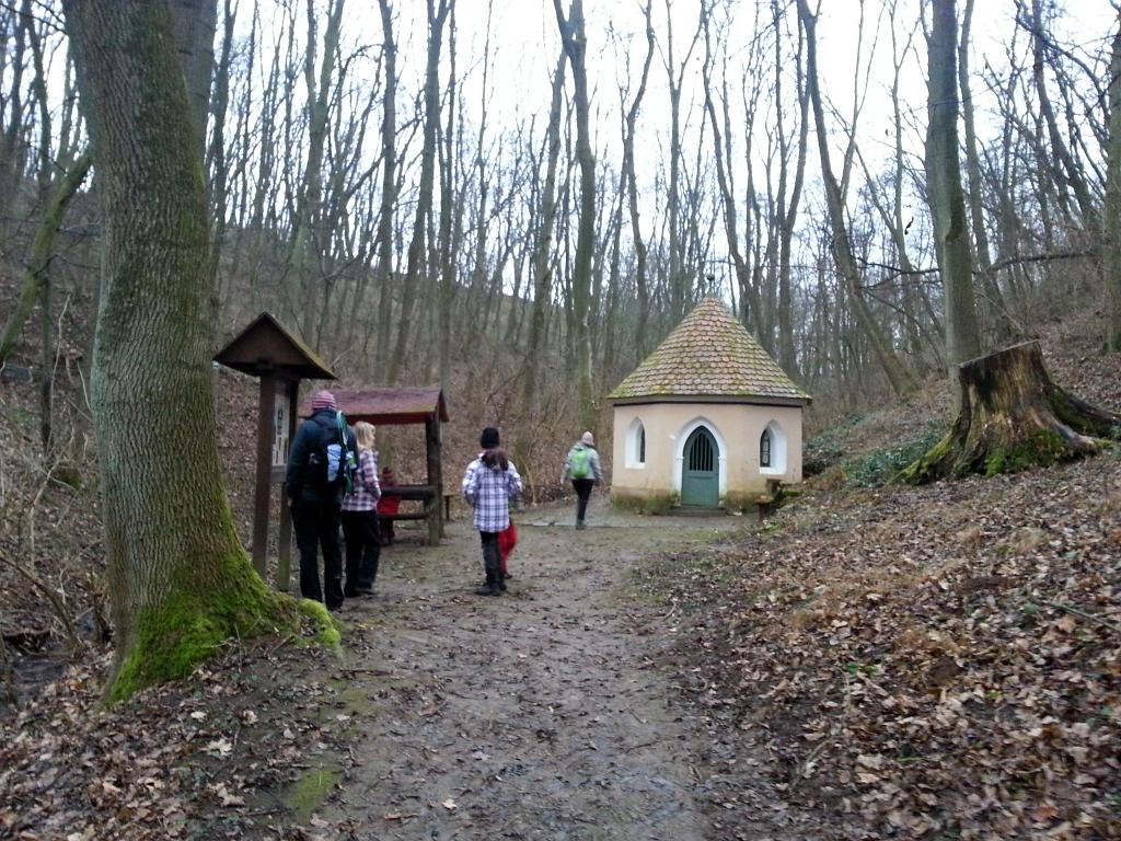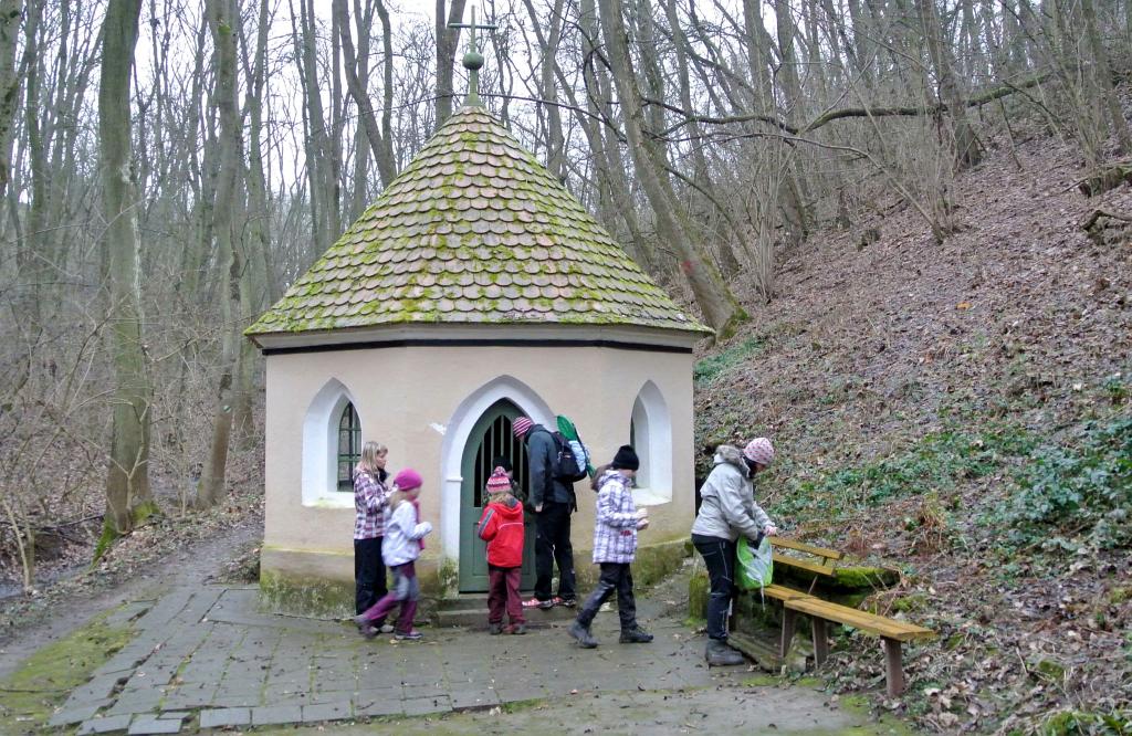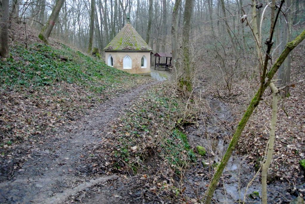 Polygonální kaple z 19. století stojí v místě vývěru jednoho z pramenů. Zajímavostí je, že roku 1836 bylo na studánku napojeno dřevěné potrubí, avšak po čase ztratil pramen na vydatnosti a tak roku 1847 byla kaplička do základu rozebrána, vodovod opraven a znovu postavena. V roce 1989 byl vodovod odpojen úplně. Ke kapli vede improvizovaná křížová cesta s výhledy na Údolí červených skal. Níže v údolí pod kaplí leží onen vodopád, který tento výlet zapříčinil, a který nám tentokrát unikl.