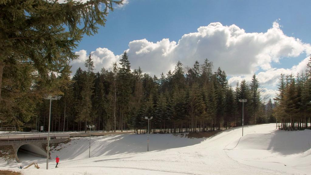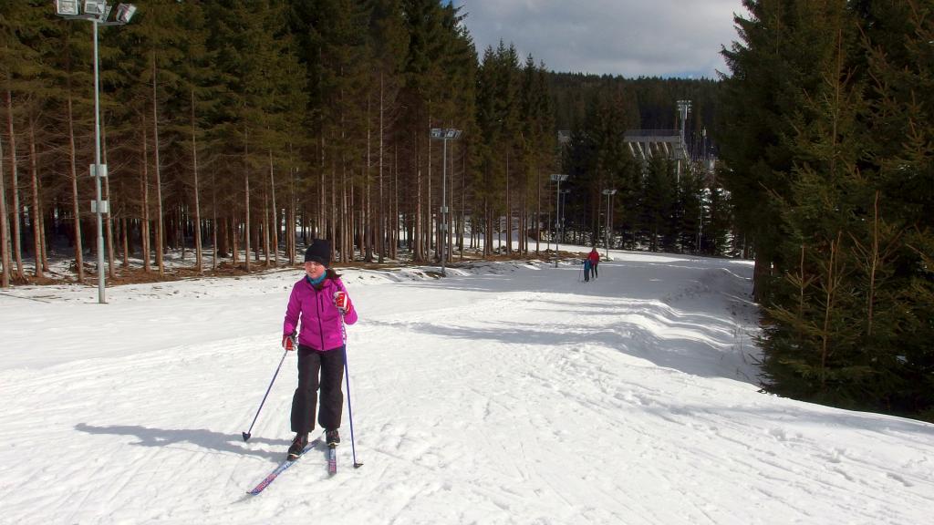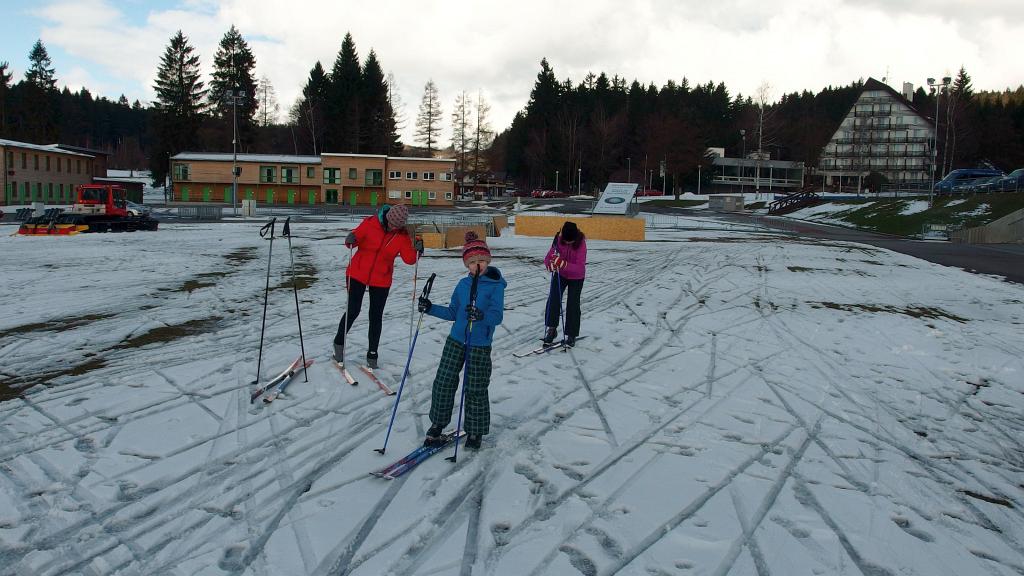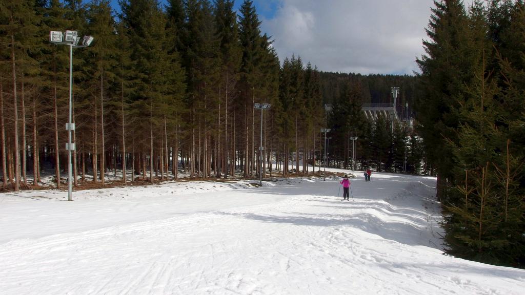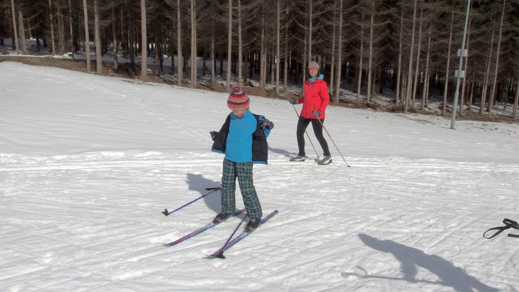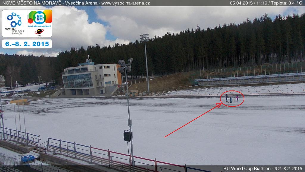 Před velikonocemi napadl na Vysočině sníh a tak jsme se rozhodli rozloučit se 5. dubna se zimní sezónou 2014 – 2015 stylově na běžkách. Vyrazili jsme teda do Nového Města na Moravě do tamní Vysočina arény, kde se konají různé běžkařské a biatlonové závody, mistrovství světa a tak podobně. Kvalita stopy sice nebyla stoprocentní a místy bylo sněhu na trati pomálu, ale i tak se dalo pěkně se po sněhu proběhnout. Čekali jsme nával běžkařů, ale po trati kroužilo tak maximálně 15 kolegů.