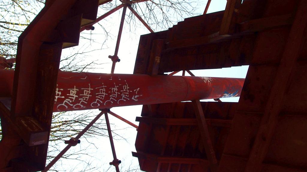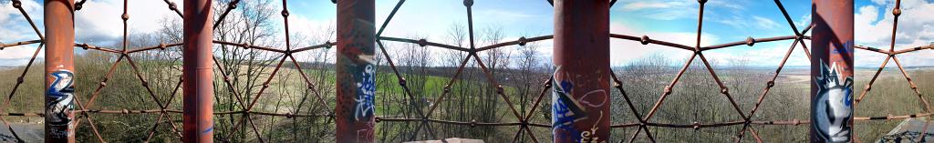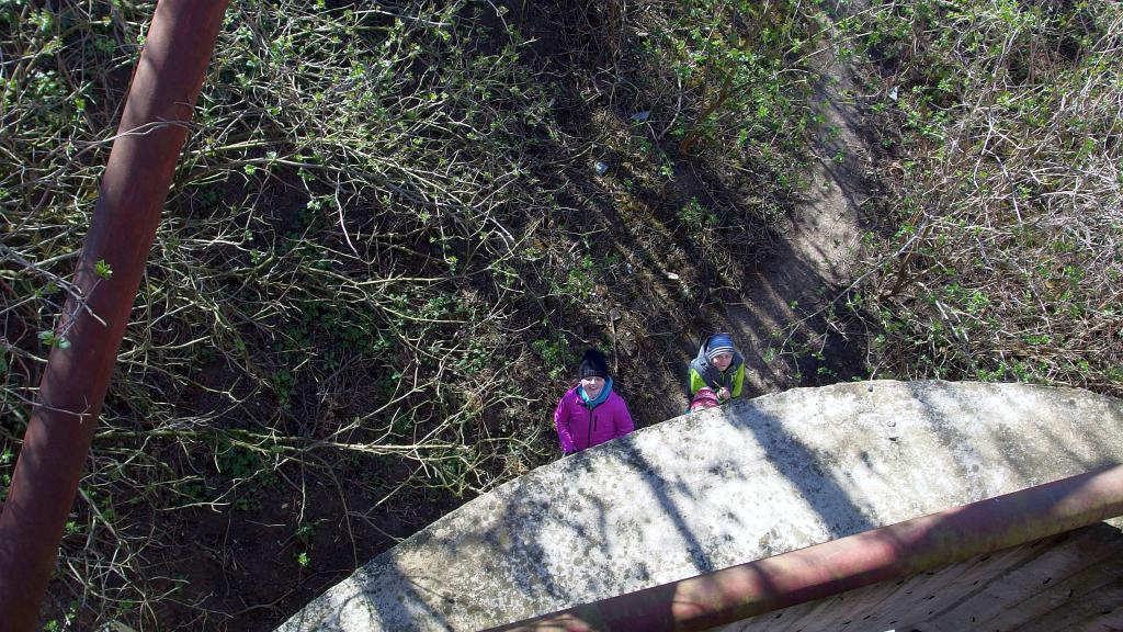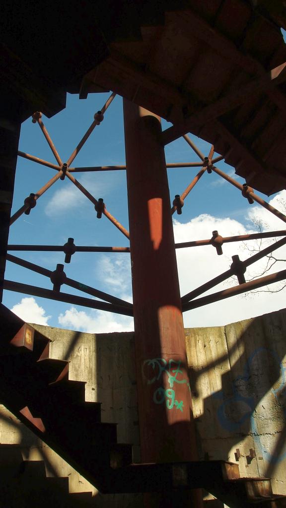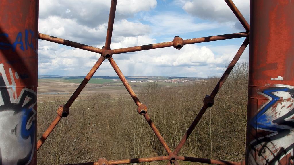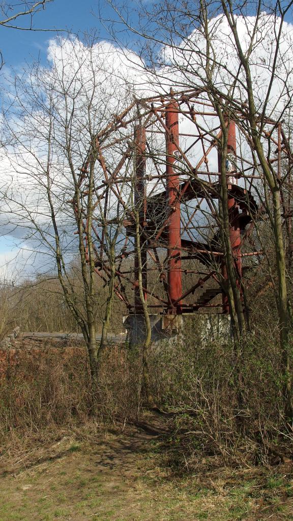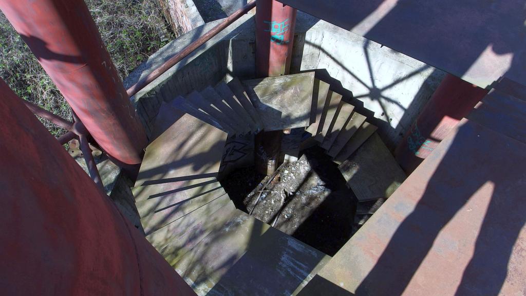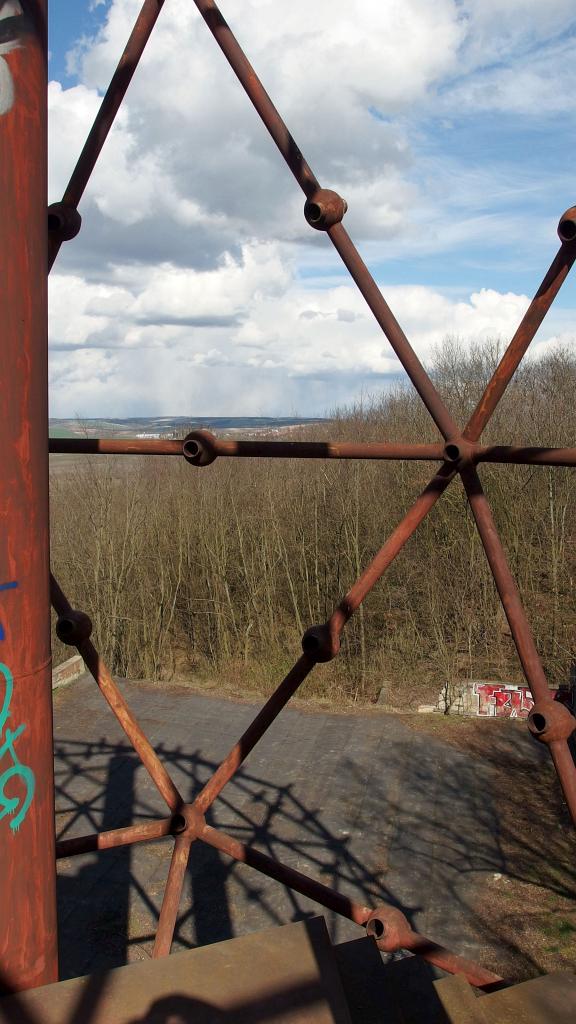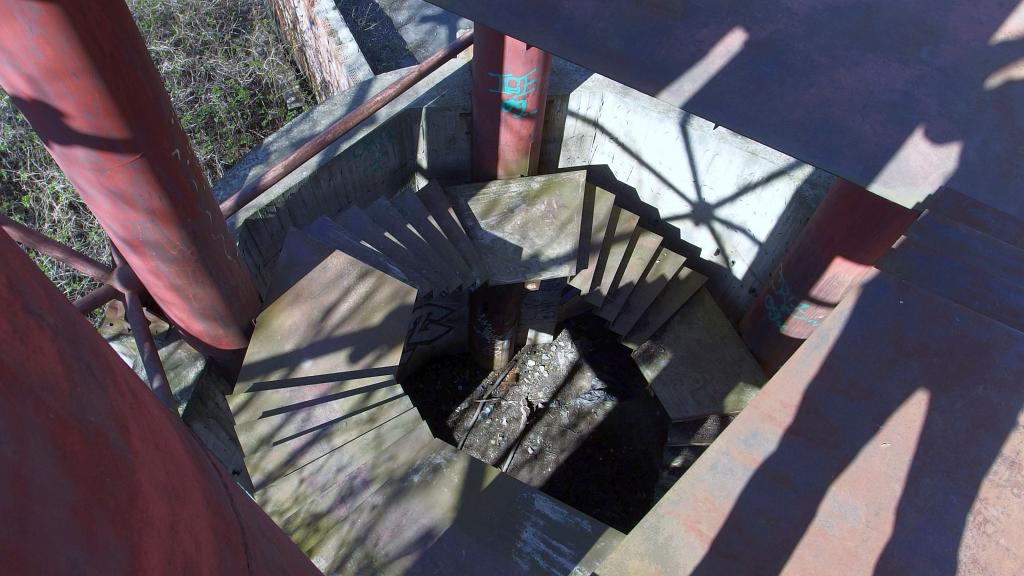 S trochou odvahy se dá do železné konstrukce vlézt a vystoupat po ocelových schodech bez zábradlí na torzo vyhlídkové plošiny (ale důrazně to nedoporučuju s dětma).